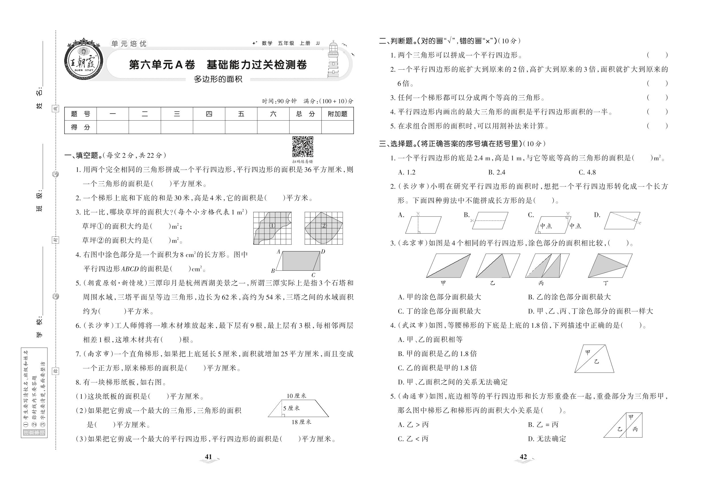 2021上册五年级数学冀教版 第六单元A卷 基础能力过关检测卷