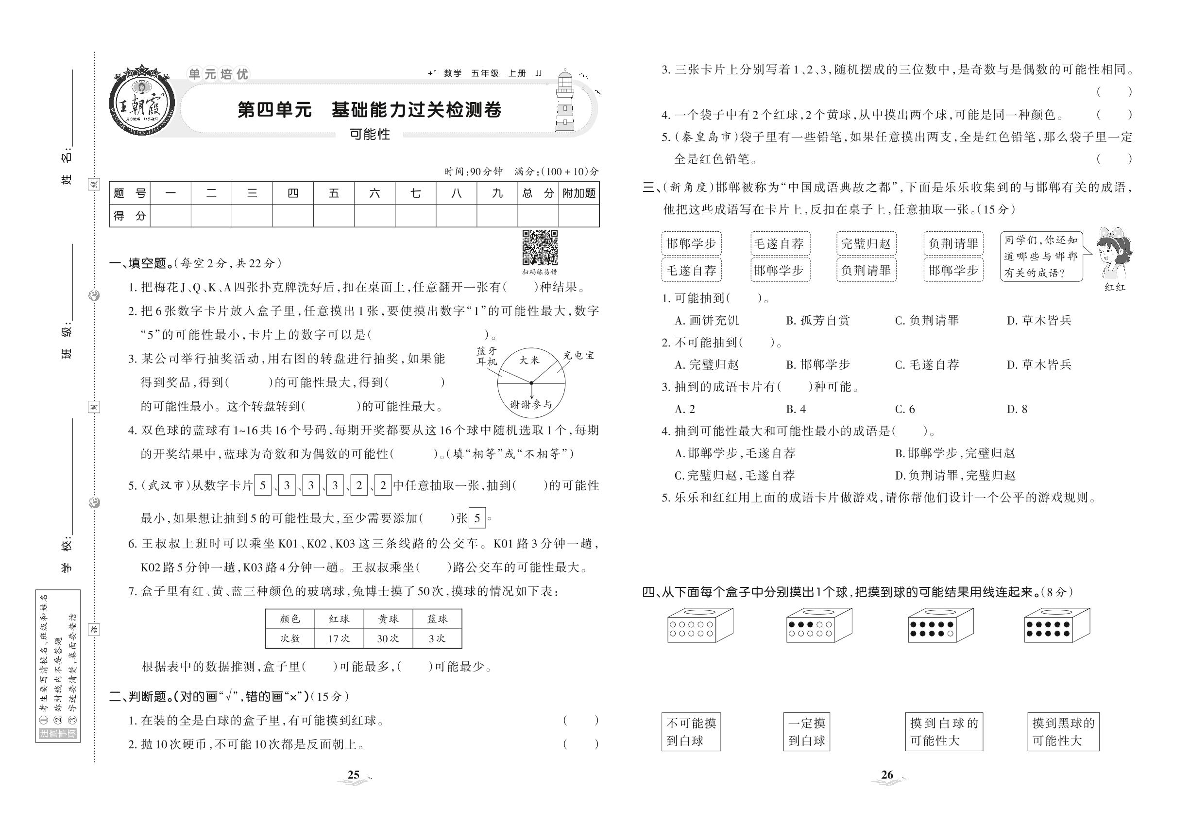 2021上册五年级数学冀教版 第四单元 基础能力过关检测卷