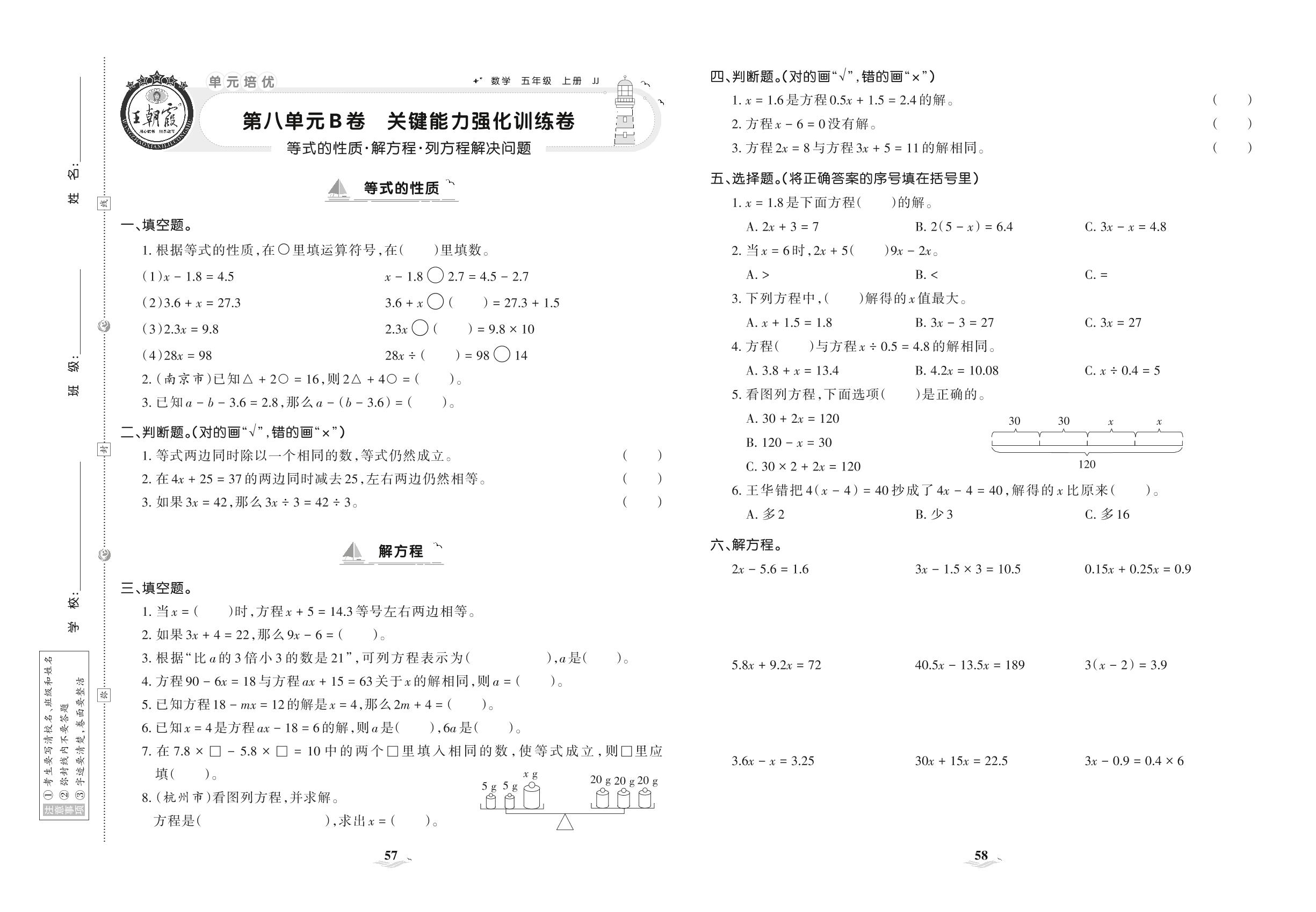 2021上册五年级数学冀教版 第八单元B卷 关键能力强化训练卷