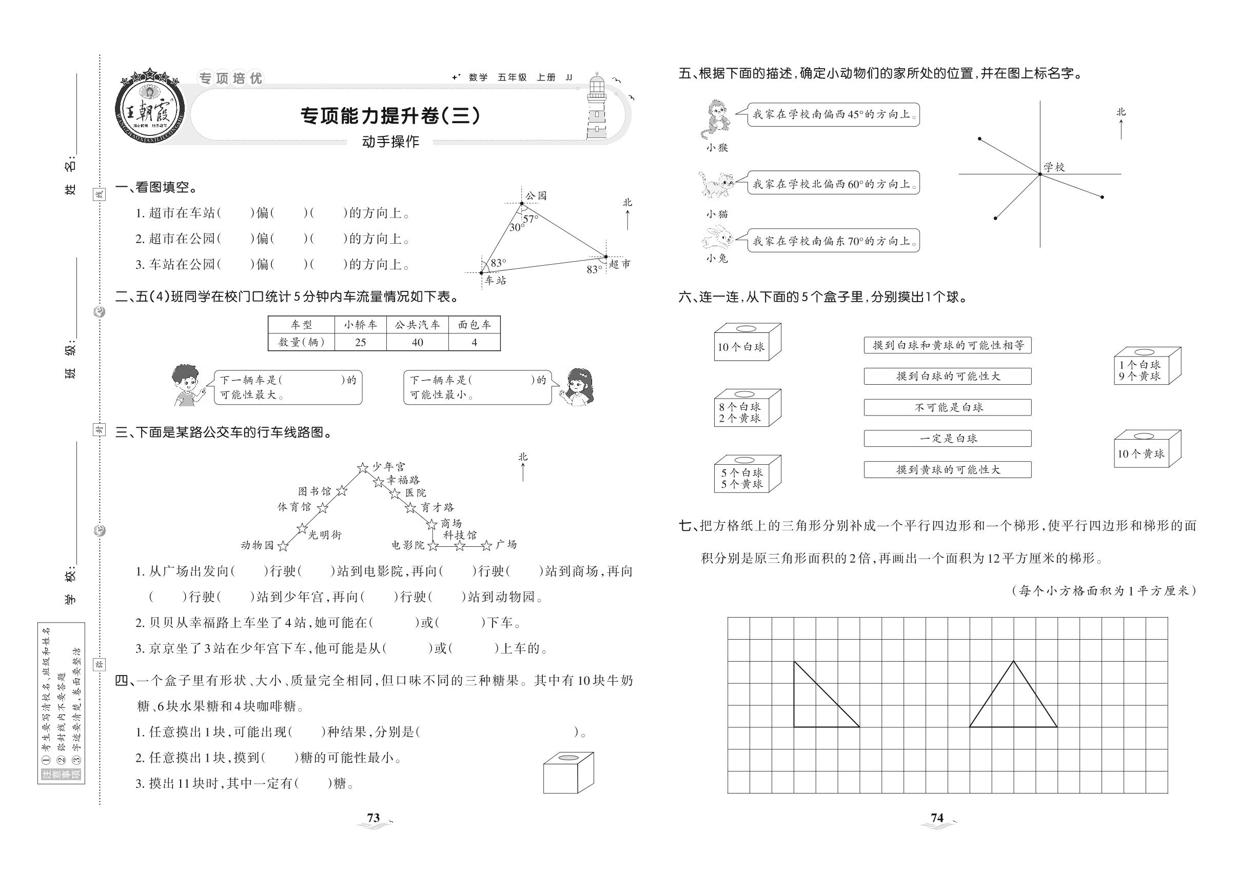 2021上册五年级数学冀教版 专项能力提升卷(三) 动手操作