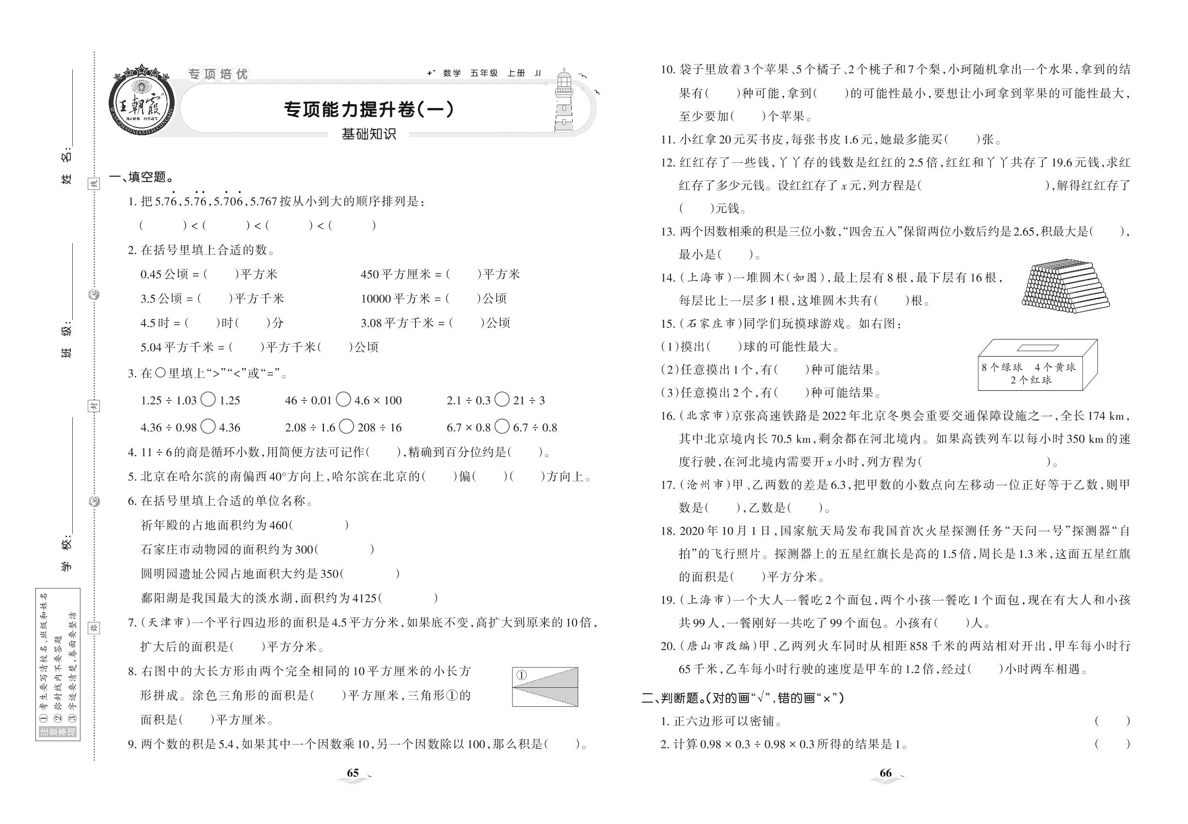 2021上册五年级数学冀教版 专项能力提升卷(一) 基础知识