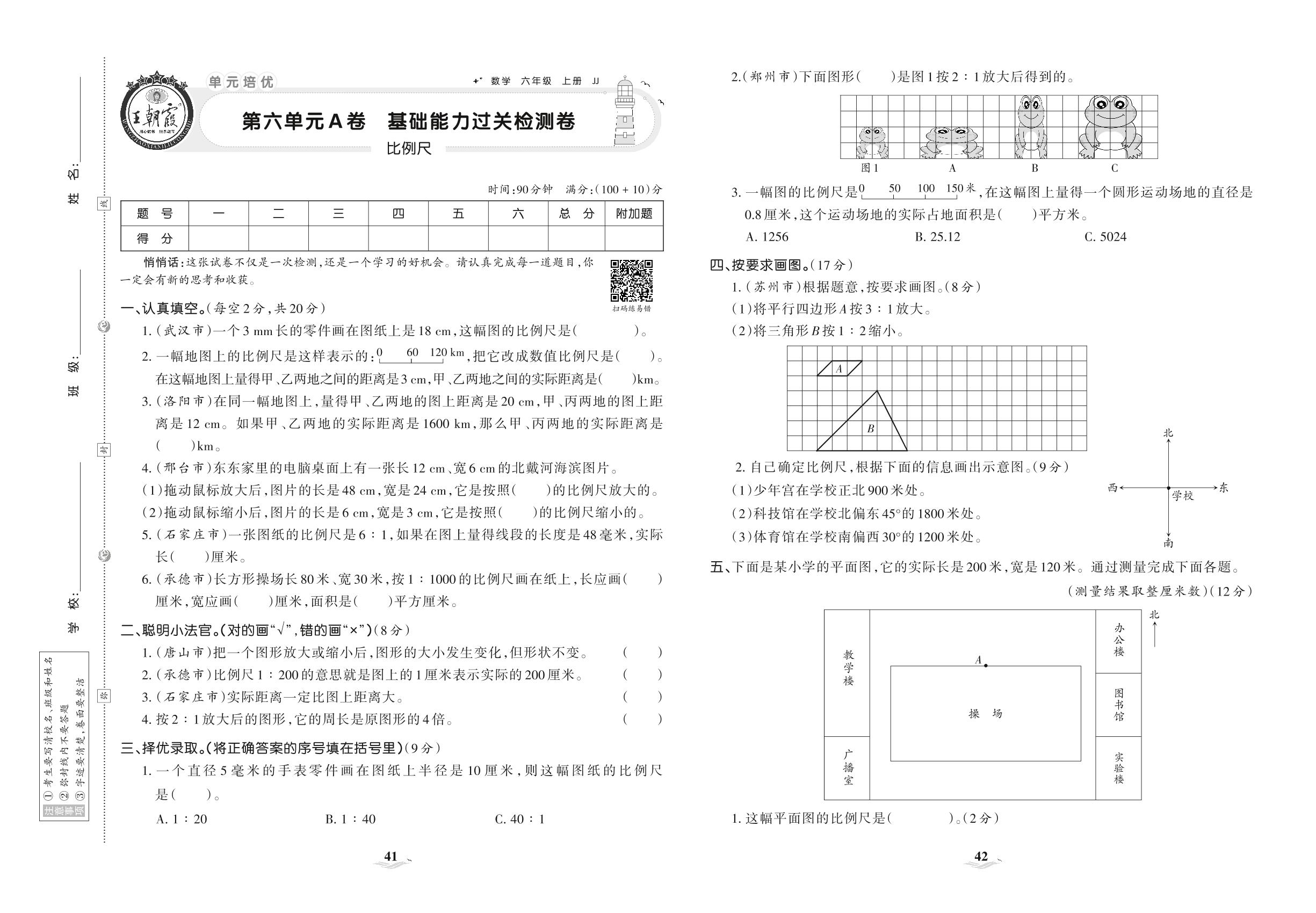 2021上册六年级数学冀教版 第六单元A卷 基础能力过关检测卷