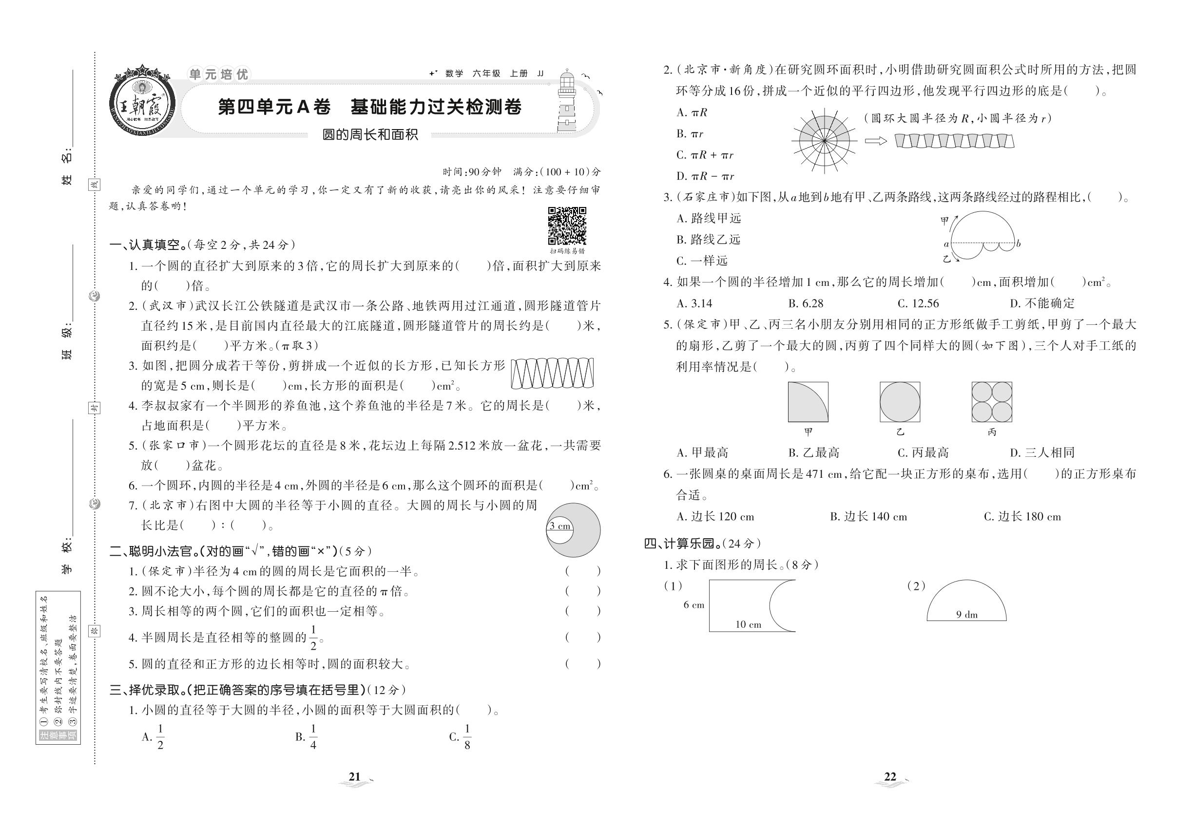 2021上册六年级数学冀教版 第四单元A卷 基础能力过关检测卷