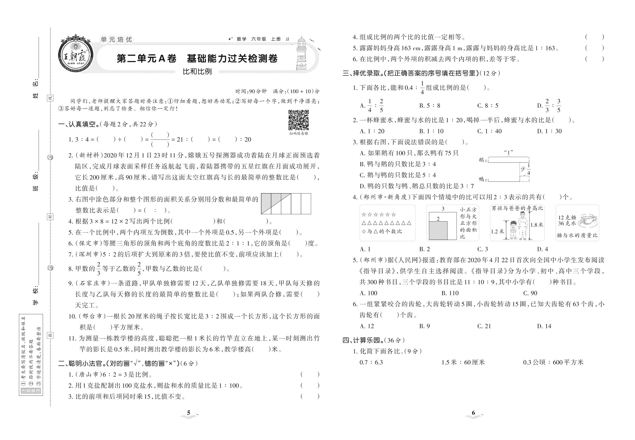 2021上册六年级数学冀教版 第二单元A卷 基础能力过关检测卷