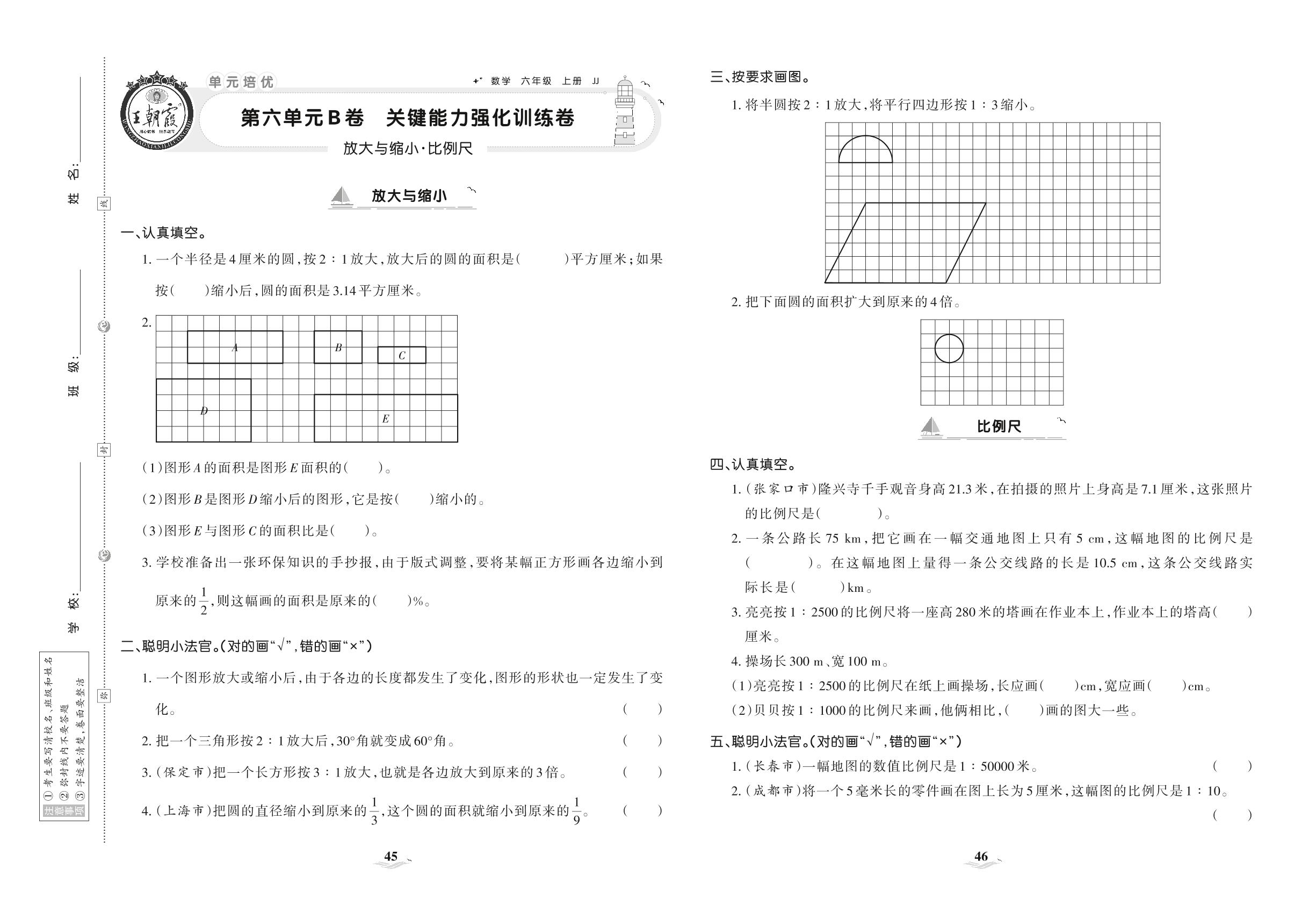 2021上册六年级数学冀教版 第六单元B卷 关键能力强化训练卷