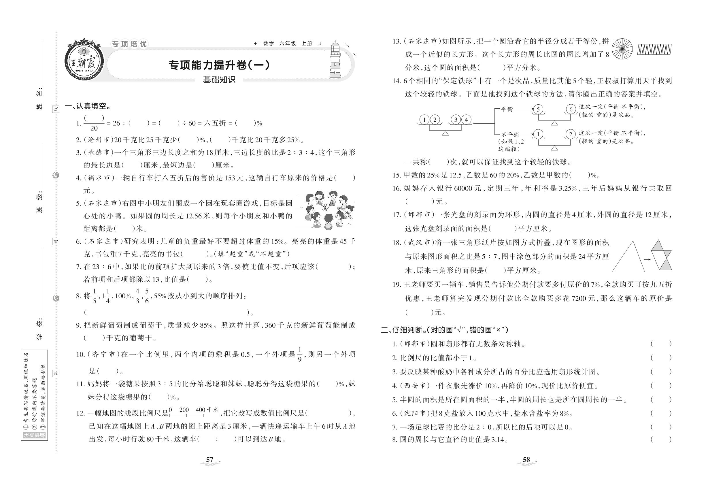 2021上册六年级数学冀教版 专项能力提升卷(一) 基础知识