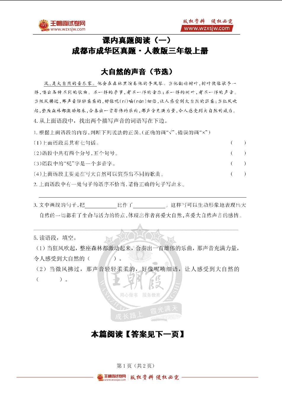 课内真题阅读(一)《大自然的声音》人教版三年级上册