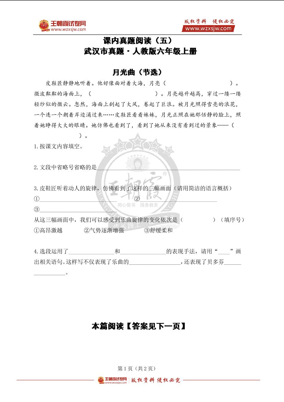 课内真题阅读(五)《月光曲》人教版六年级上册