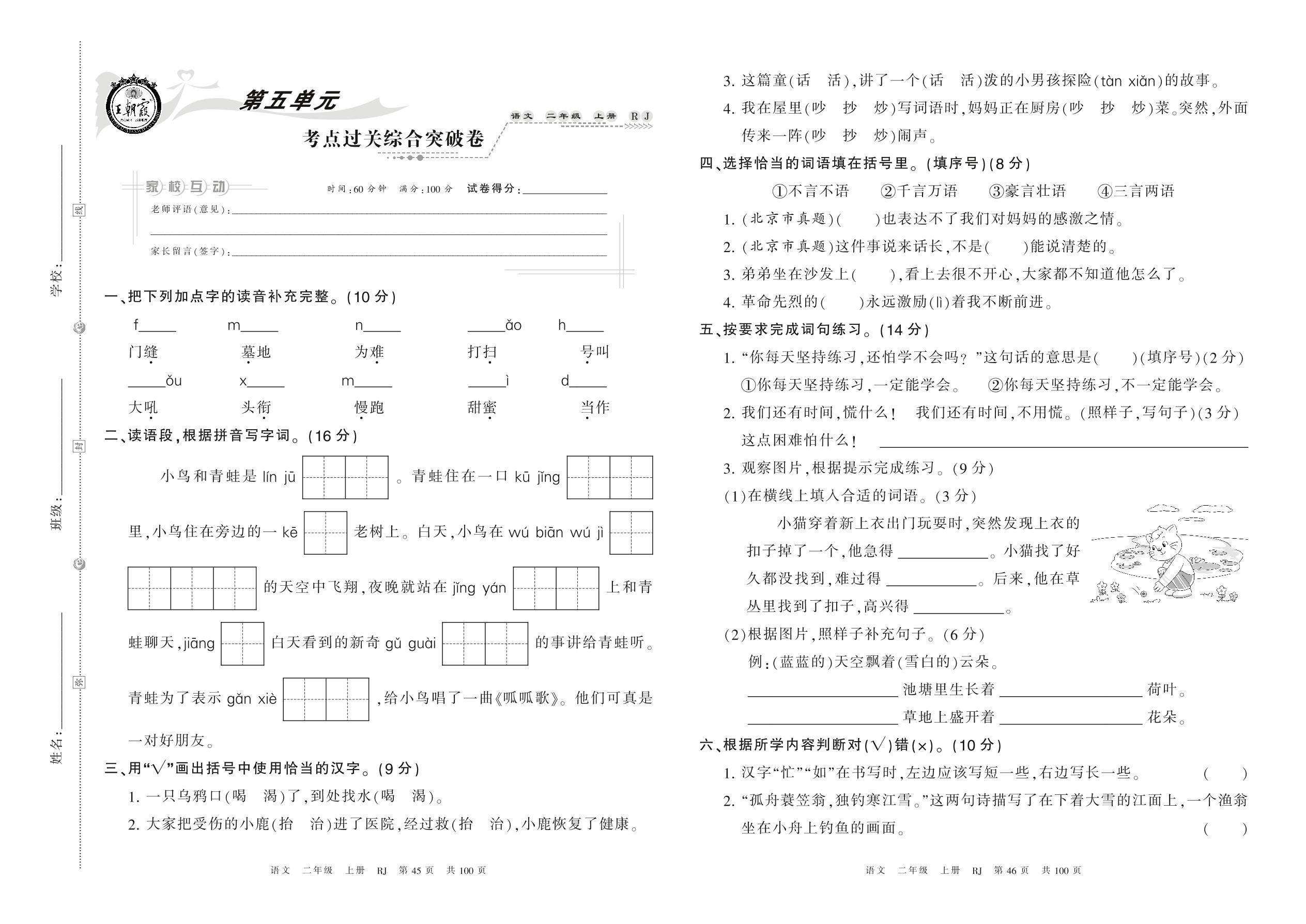 二年级语文人教版上册单元卷