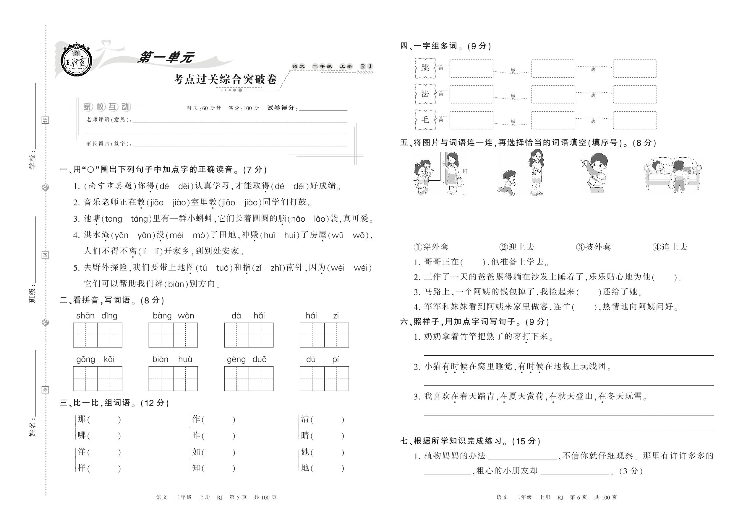 二年级语文人教版上册单元卷