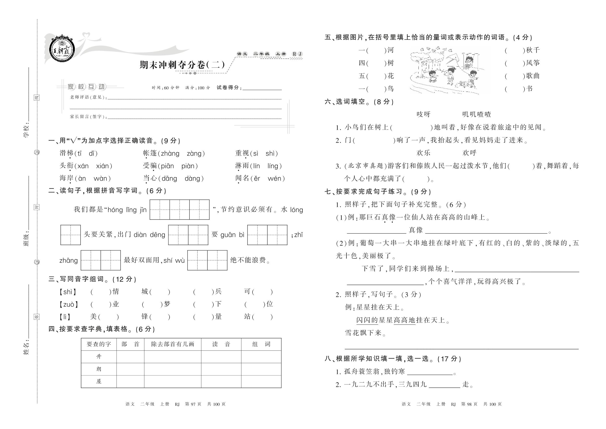 2021上册二年级语文人教版 期末冲刺夺分卷(二)