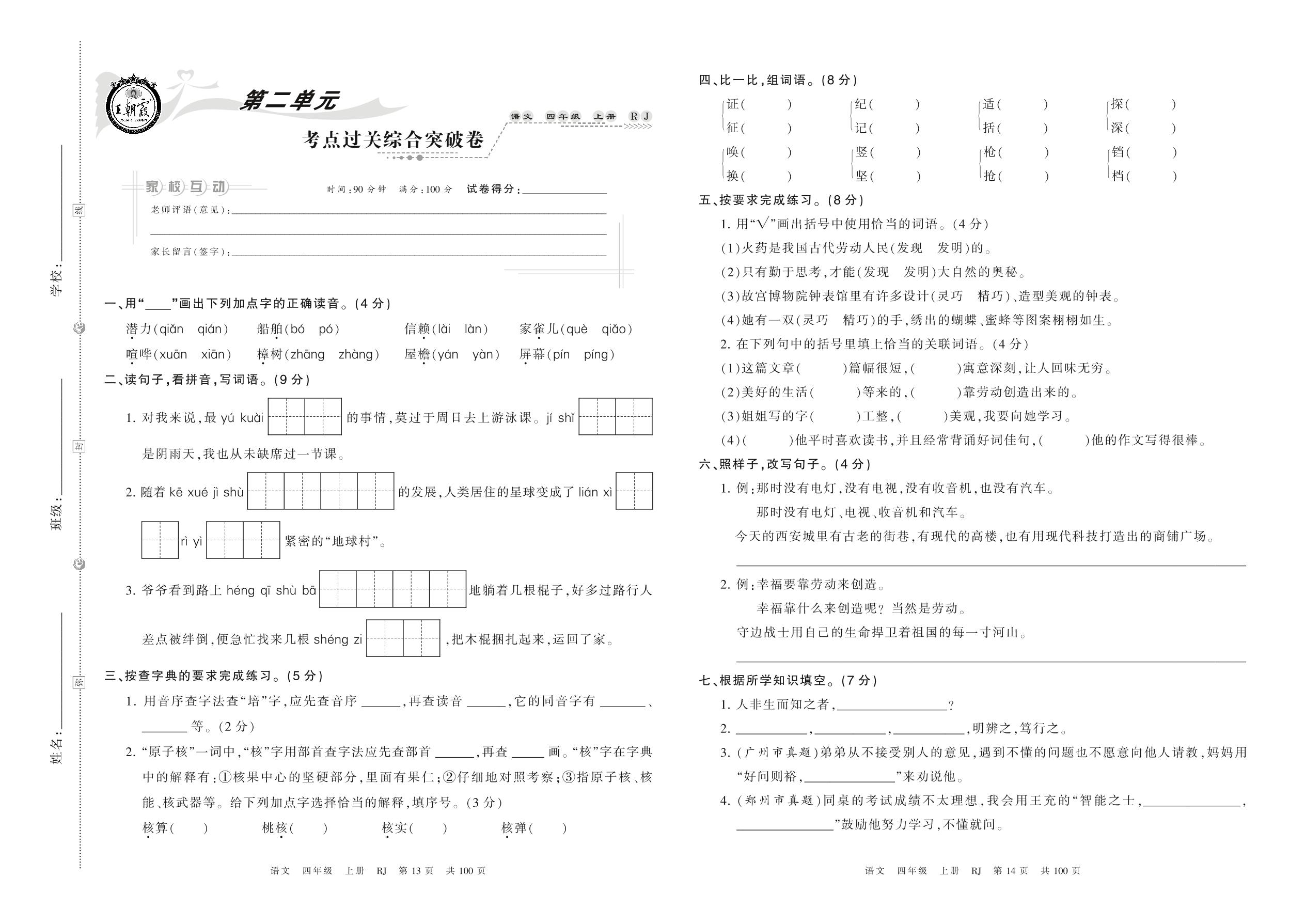 四年级语文人教版上册单元卷