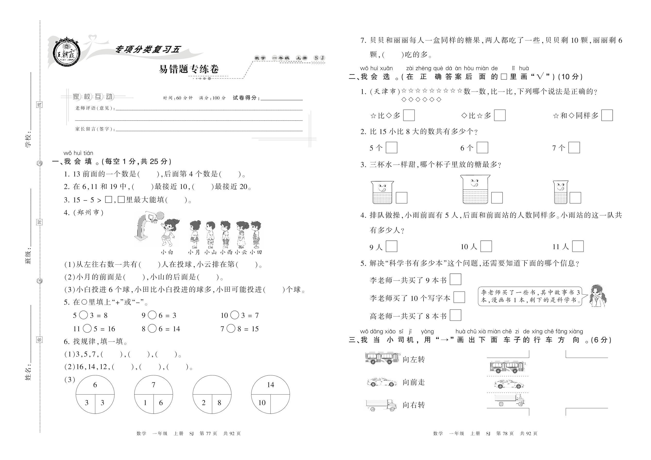 一年级数学苏教版上册专项卷