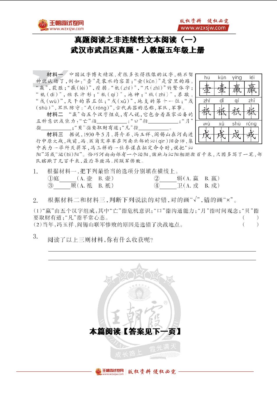 五年级语文人教版上册专项卷