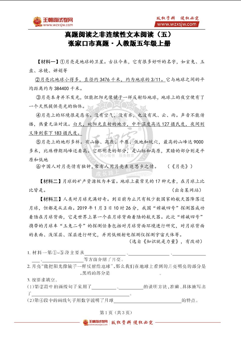 人教版五年级上册·非连续性文本阅读训练(五)