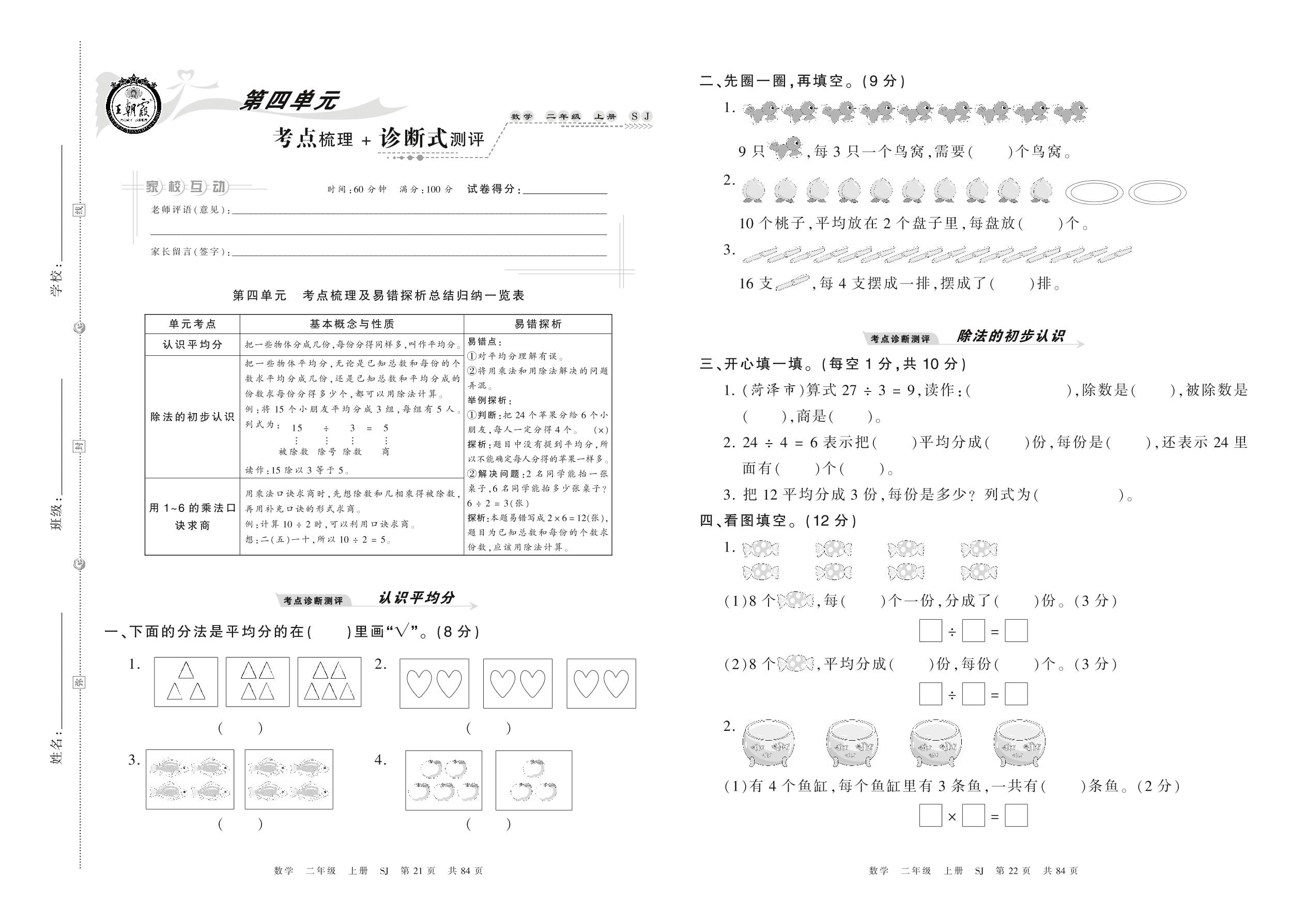 2021上册二年级数学苏教版 第四单元 考点梳理 + 诊断式测评