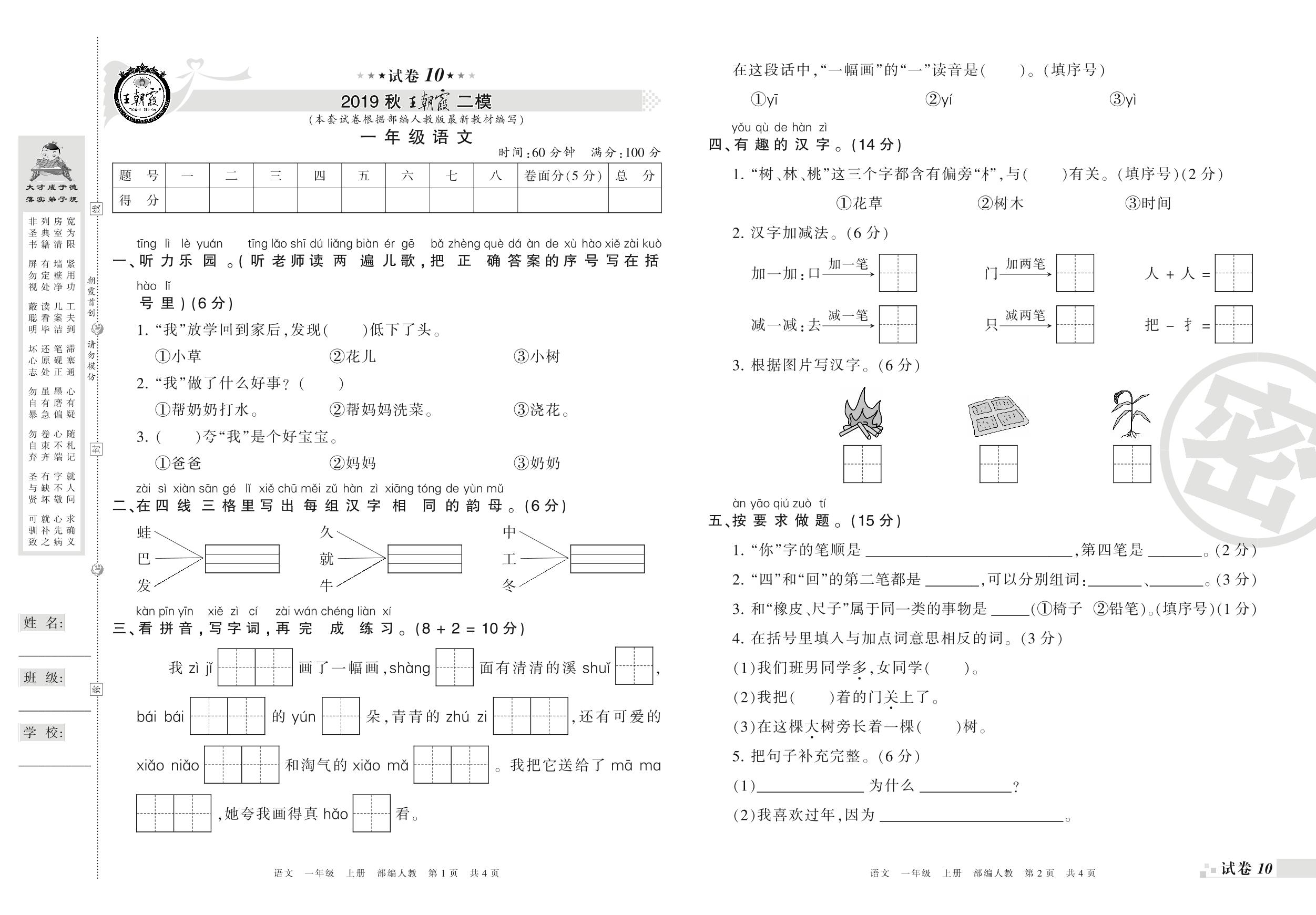 王朝霞期末模拟卷一年级上册语文(人教版)_R210731181840【10】