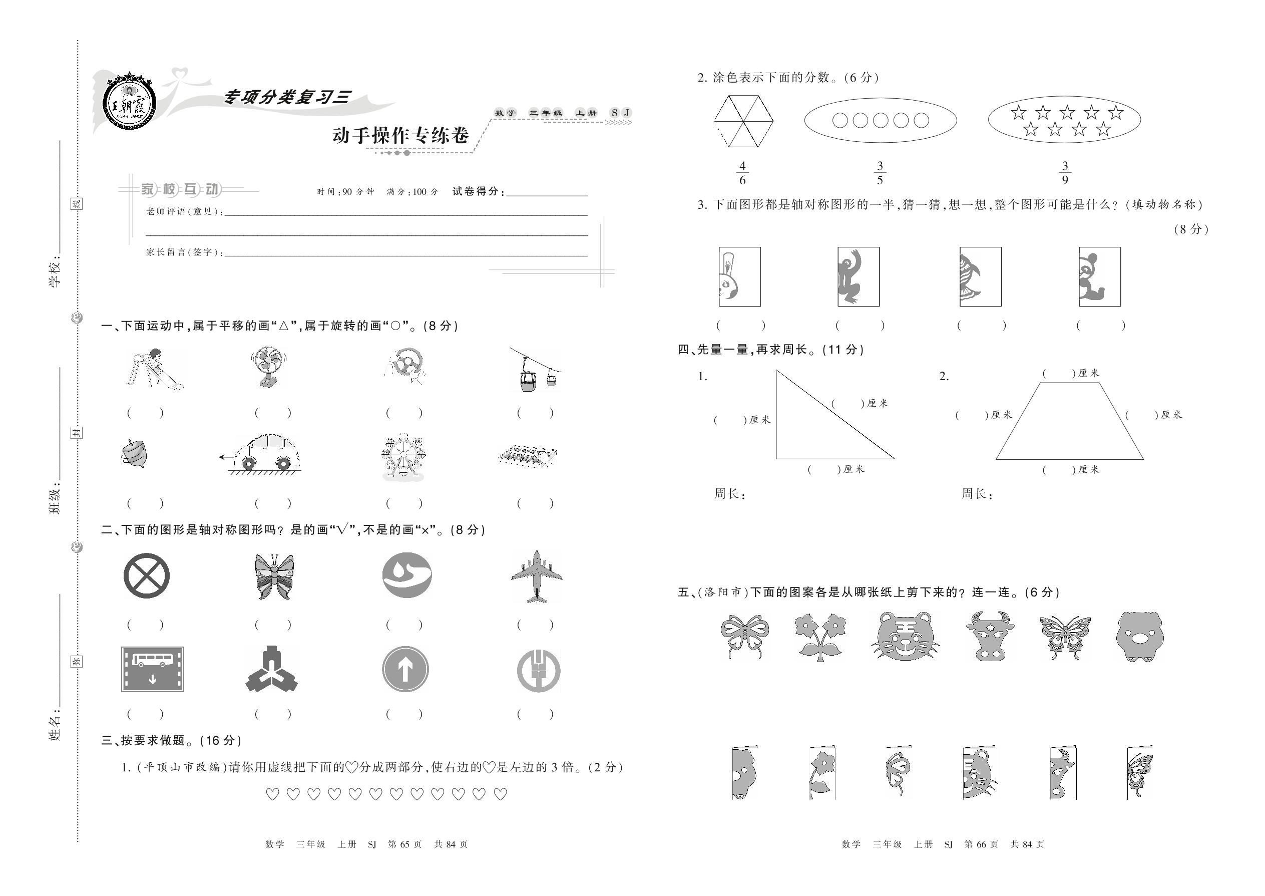 2021上册三年级数学苏教版 动手操作专练卷