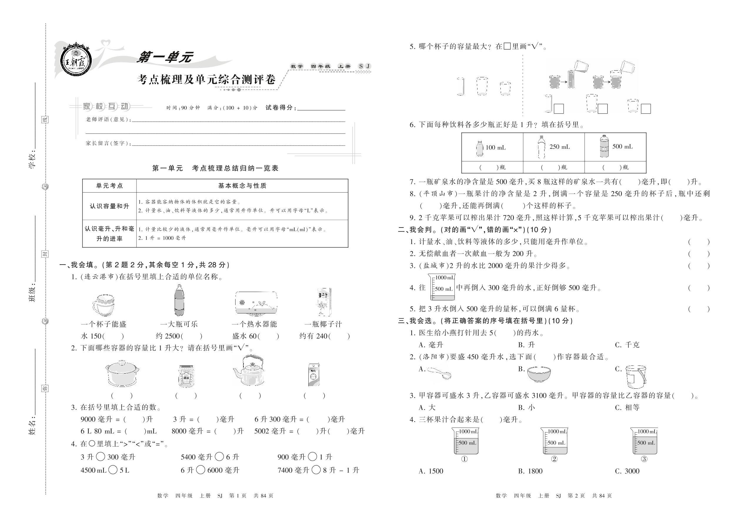 2021上册四年级数学苏教版 第一单元 考点梳理及单元综合测评卷