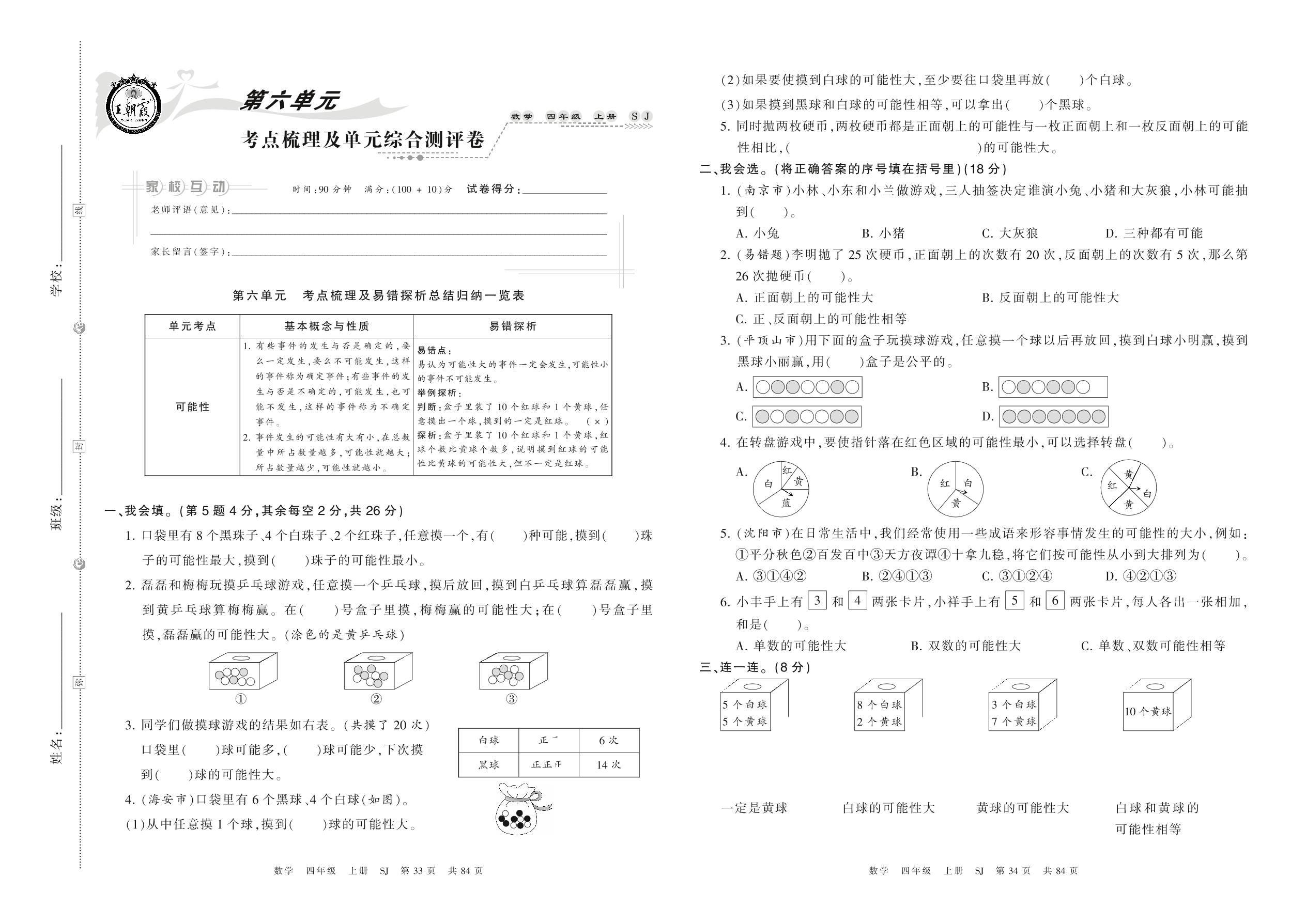 2021上册四年级数学苏教版 第六单元 考点梳理及单元综合测评卷