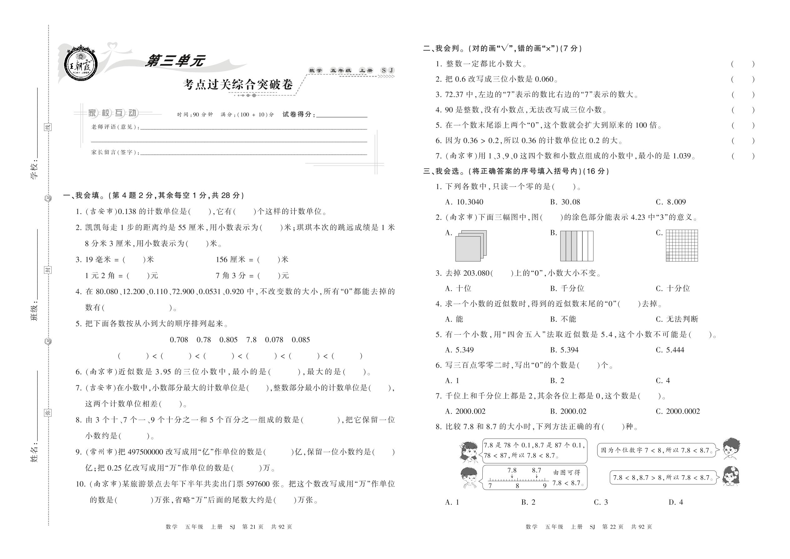 2021上册五年级数学苏教版 第三单元 考点过关综合突破卷