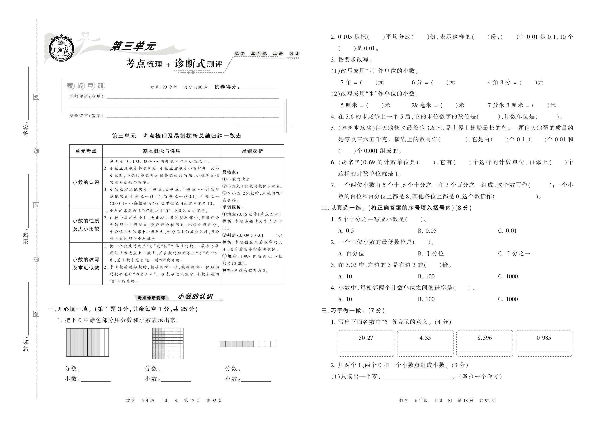 2021上册五年级数学苏教版 第三单元 考点梳理+诊断式测评