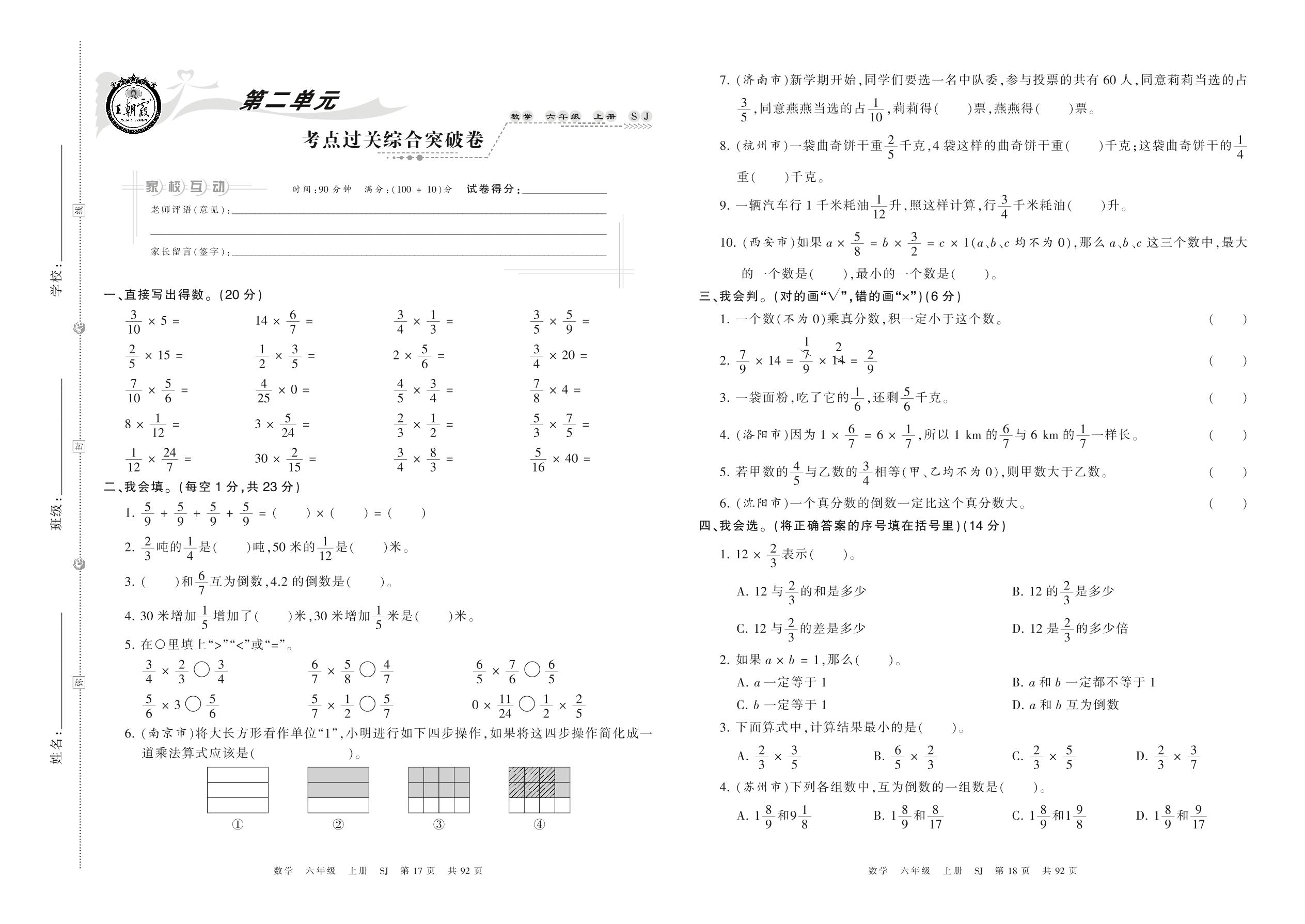 2021上册六年级数学苏教版 第二单元 考点过关综合突破卷