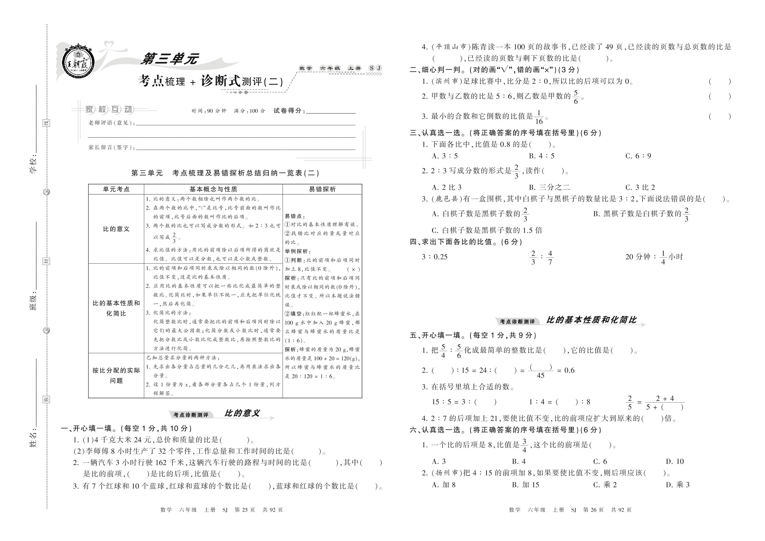 2021上册六年级数学苏教版 第三单元 考点梳理 + 诊断式测评(二)