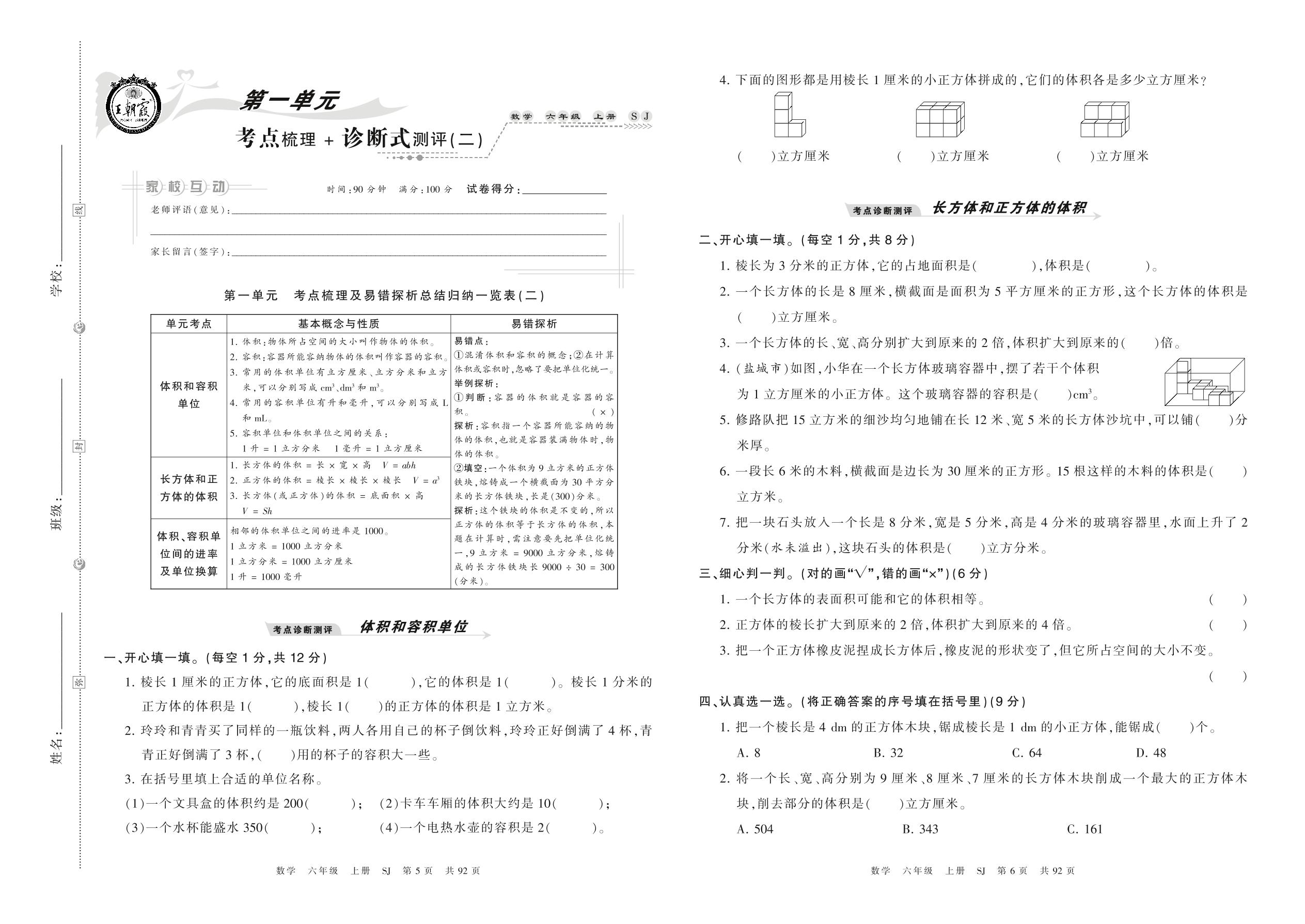 2021上册六年级数学苏教版 第一单元 考点梳理 + 诊断式测评(二)