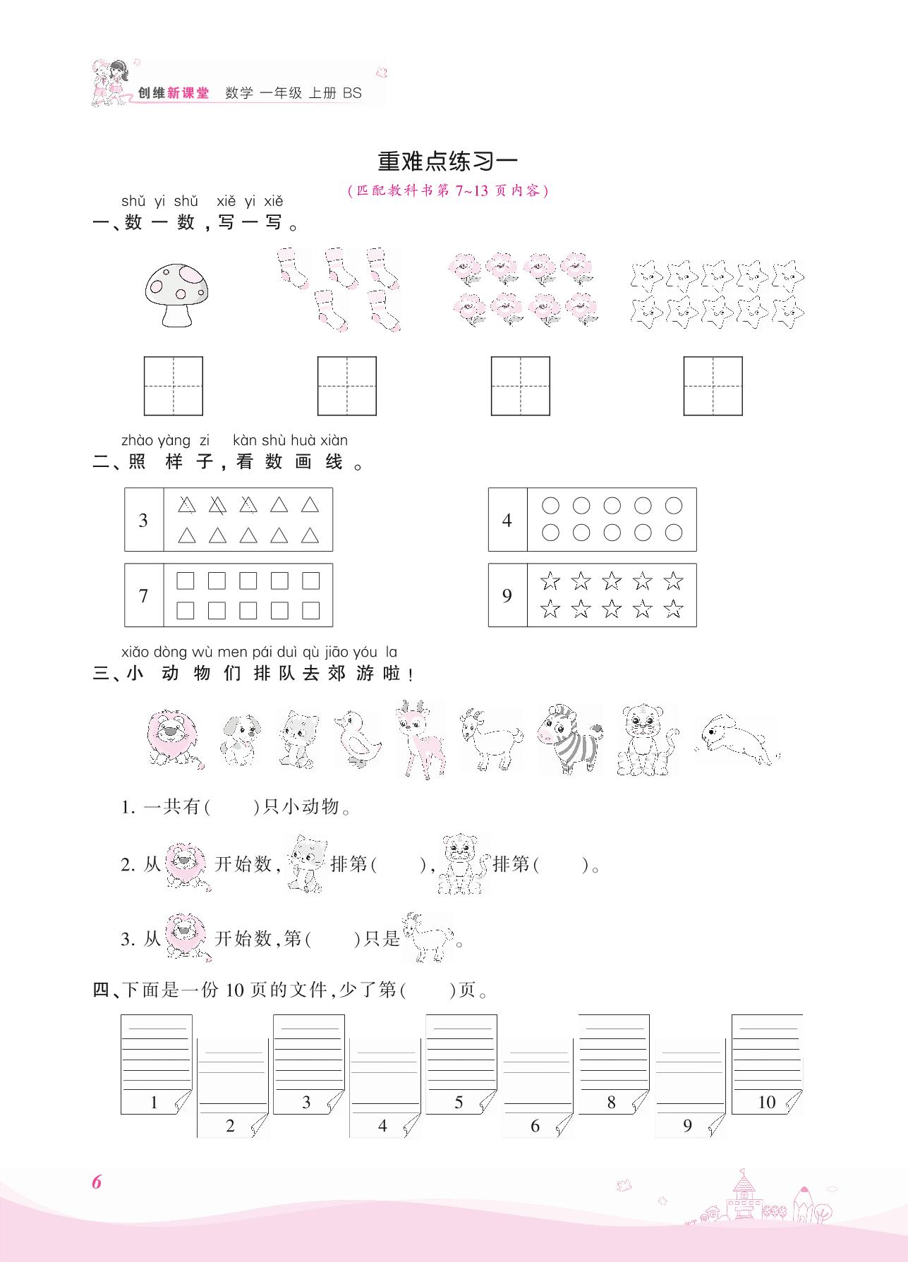 2021上册一年级数学北师版 一 生活中的数——重难点练习一