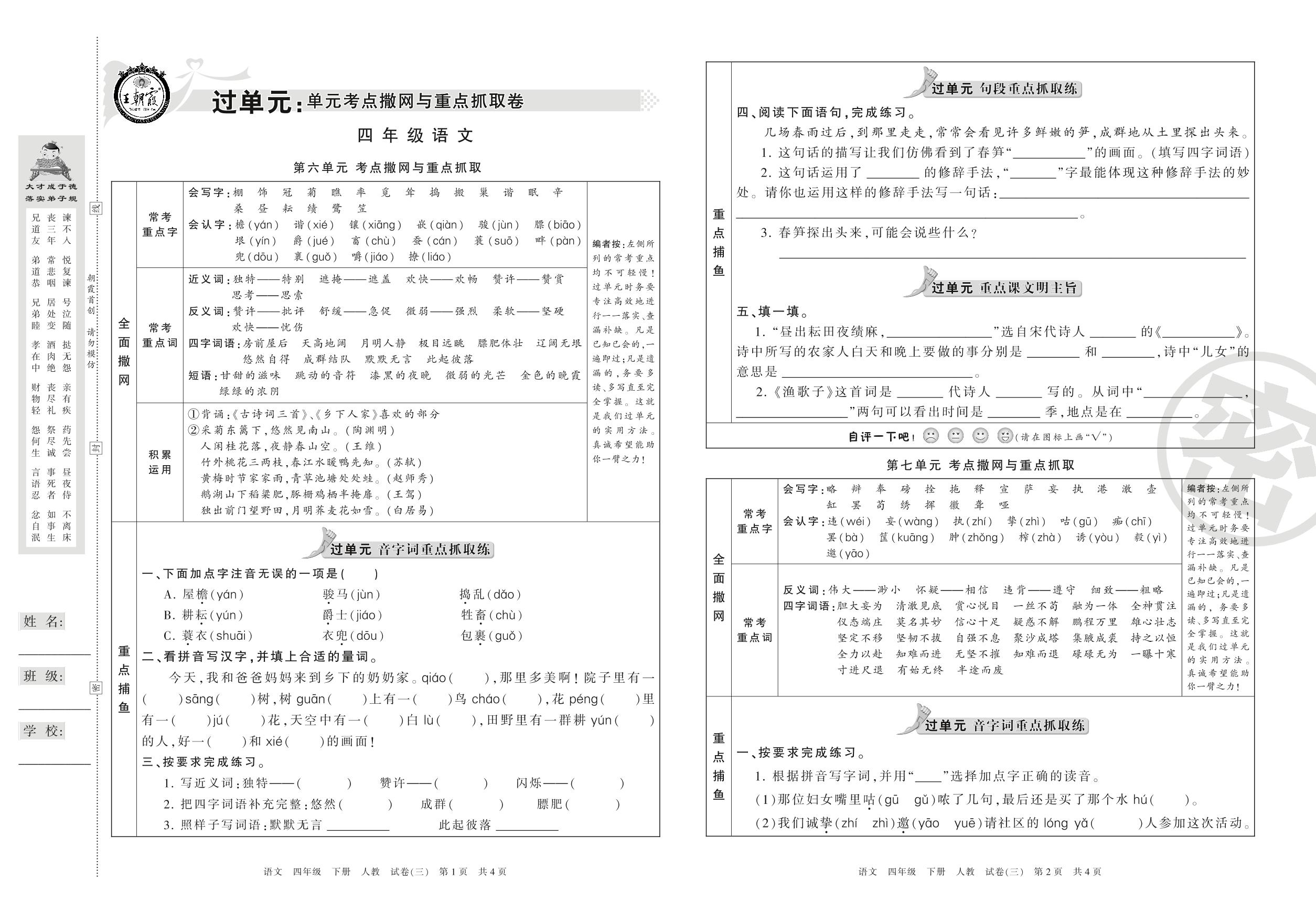 王朝霞期末过单元四年级下册语文(人教版)_R210801210714【3】