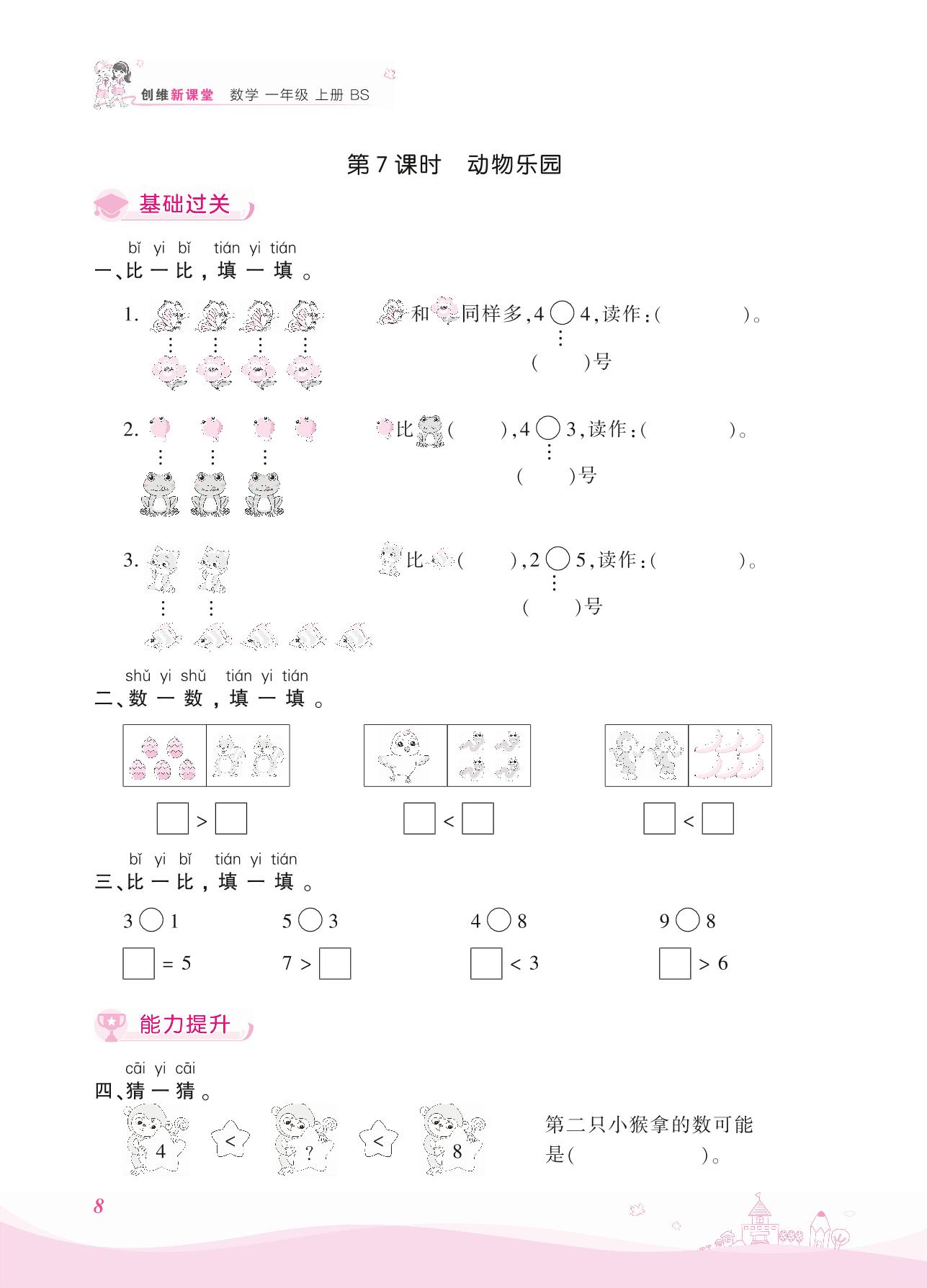 2021上册一年级数学北师版 一 生活中的数——第7课时 动物乐园