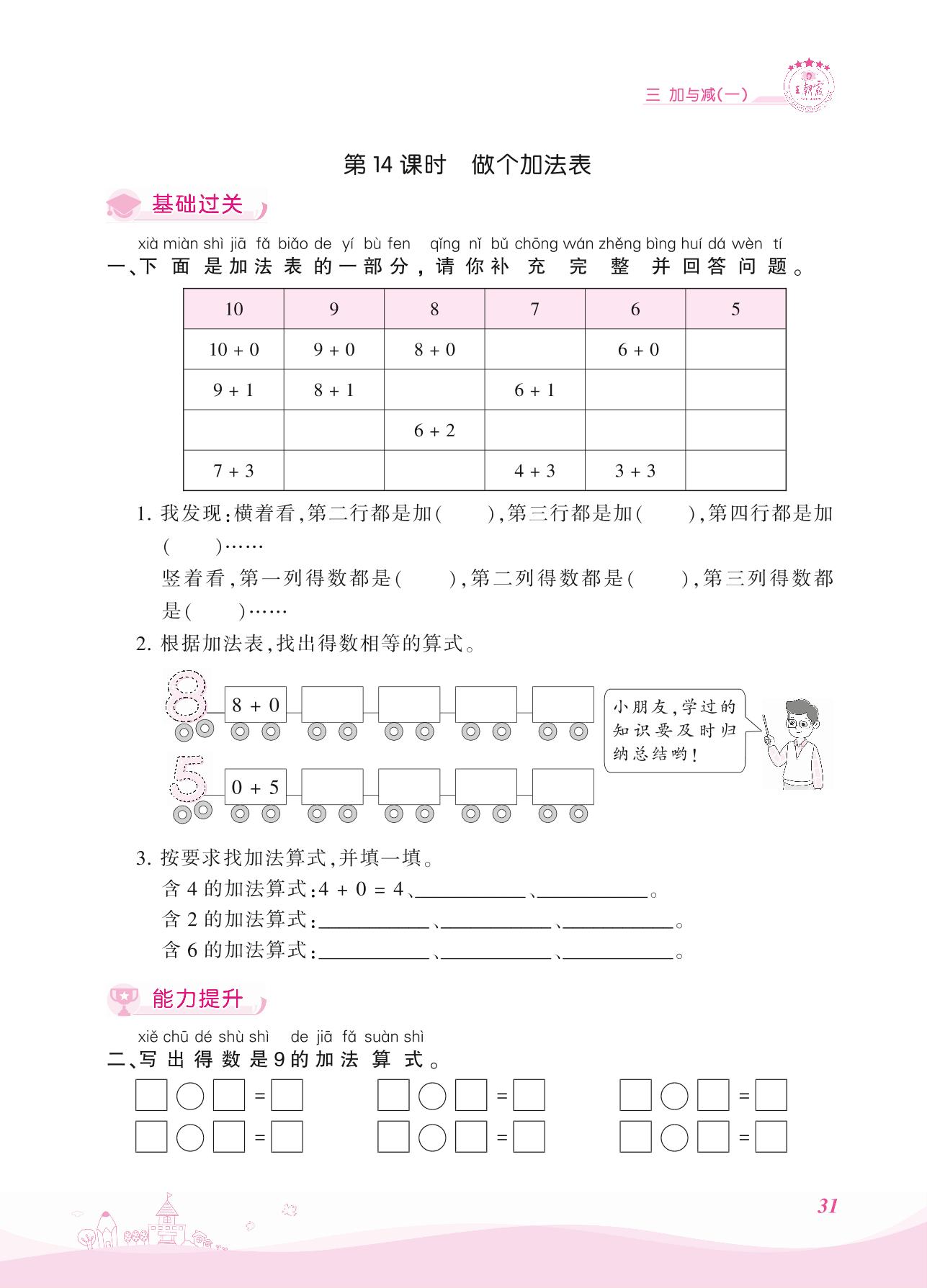 2021上册一年级数学北师版 三 加与减(一)——第14课时 做个加法表