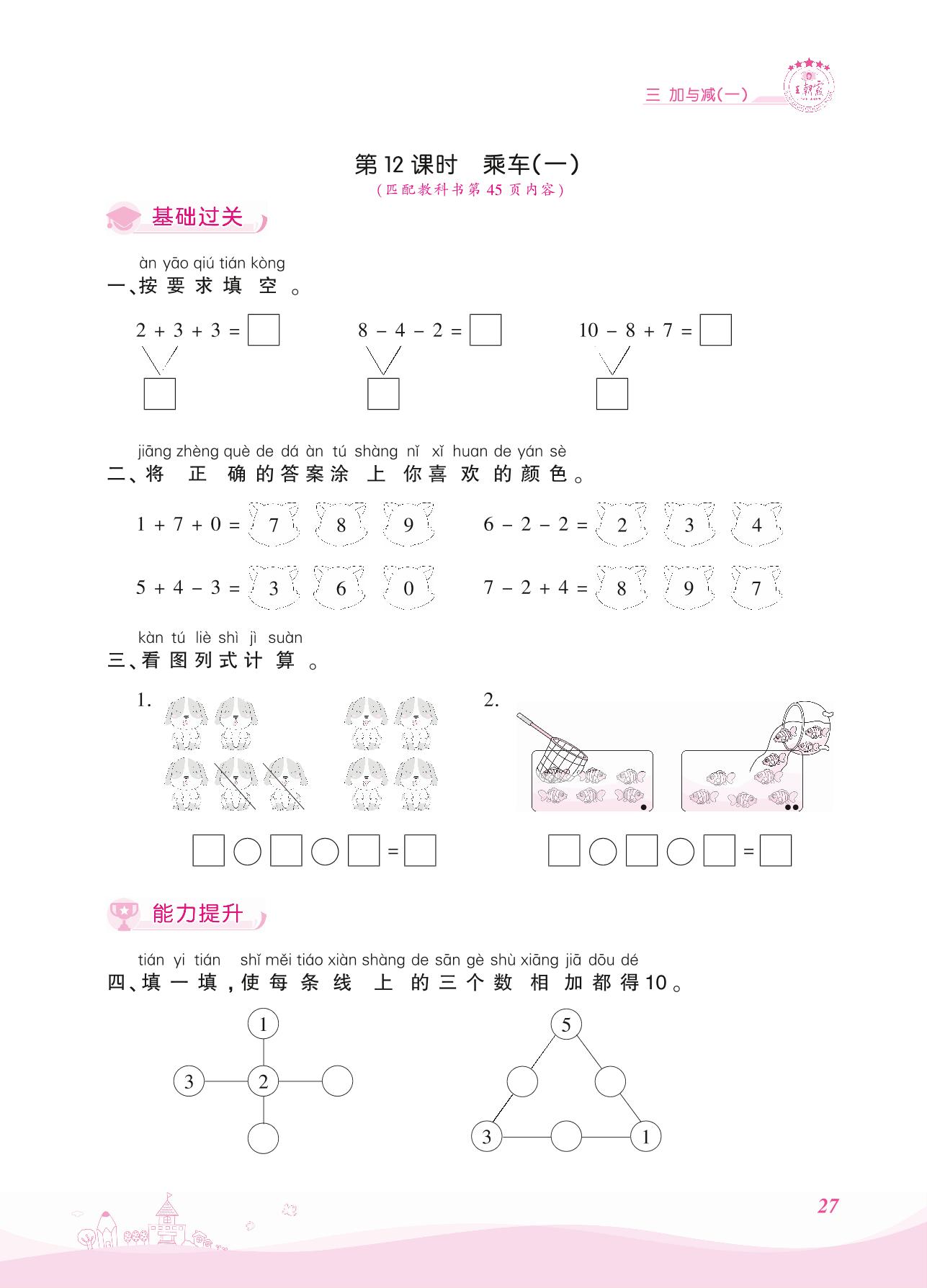 2021上册一年级数学北师版 三 加与减(一)——第12课时 乘车(一)
