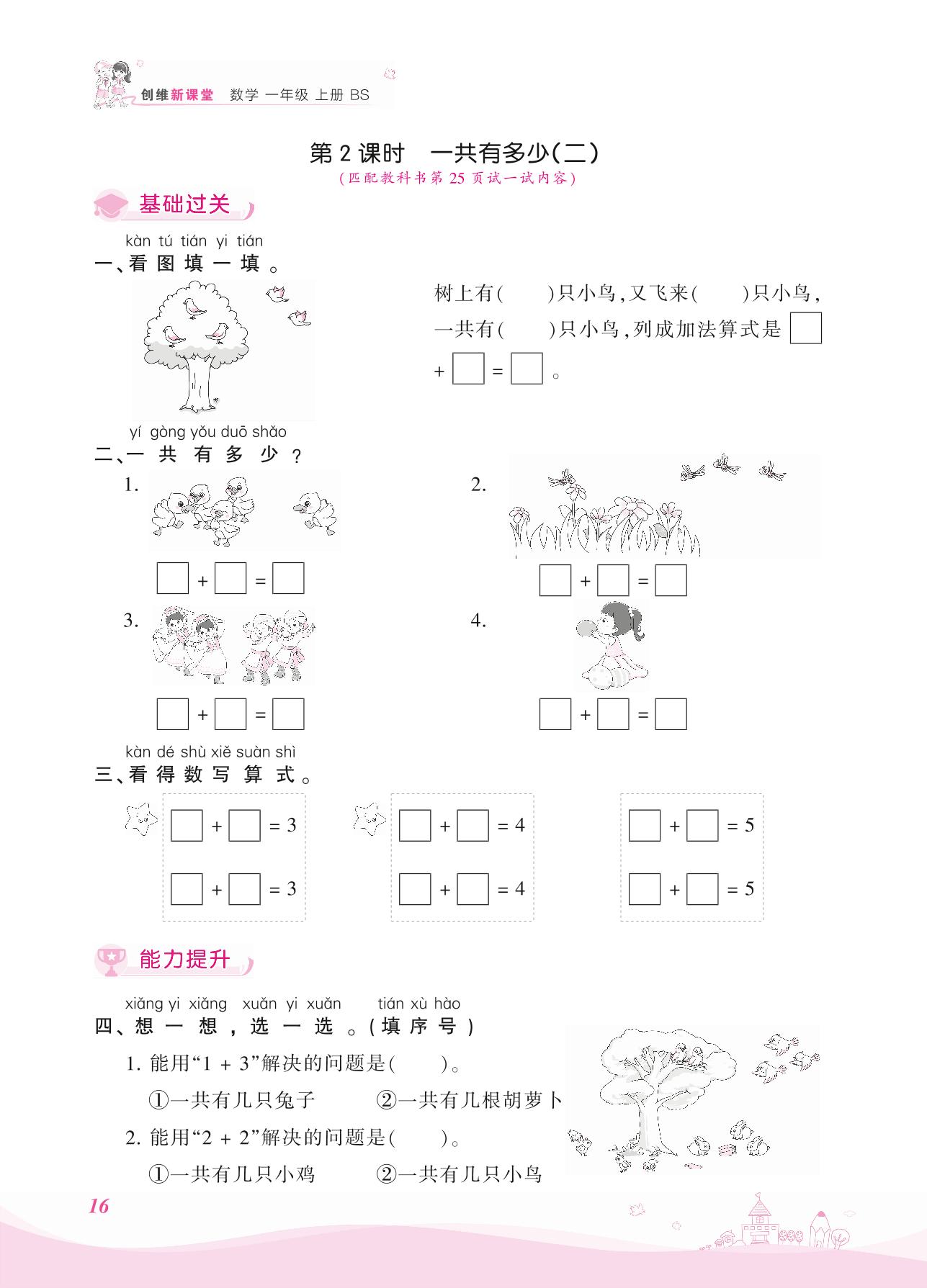 2021上册一年级数学北师版 三 加与减(一)——第2课时 一共有多少(二)