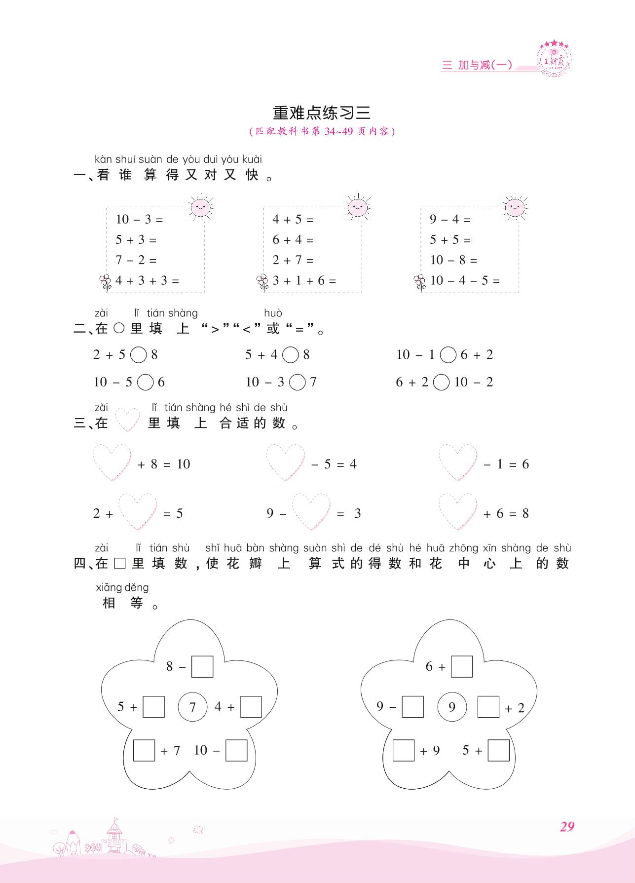 2021上册一年级数学北师版 三 加与减(一)——重难点练习三