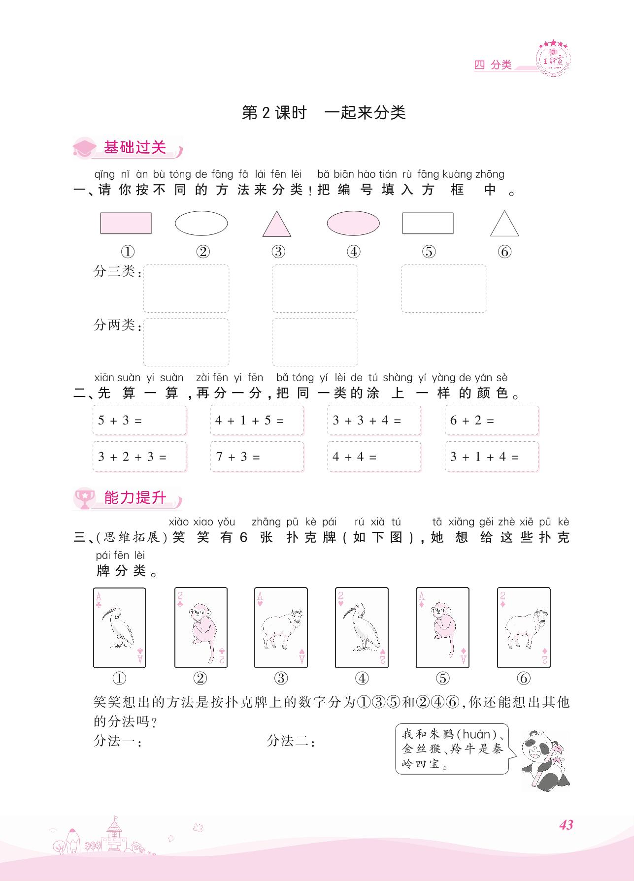 2021上册一年级数学北师版 四 分类——第2课时 一起来分类