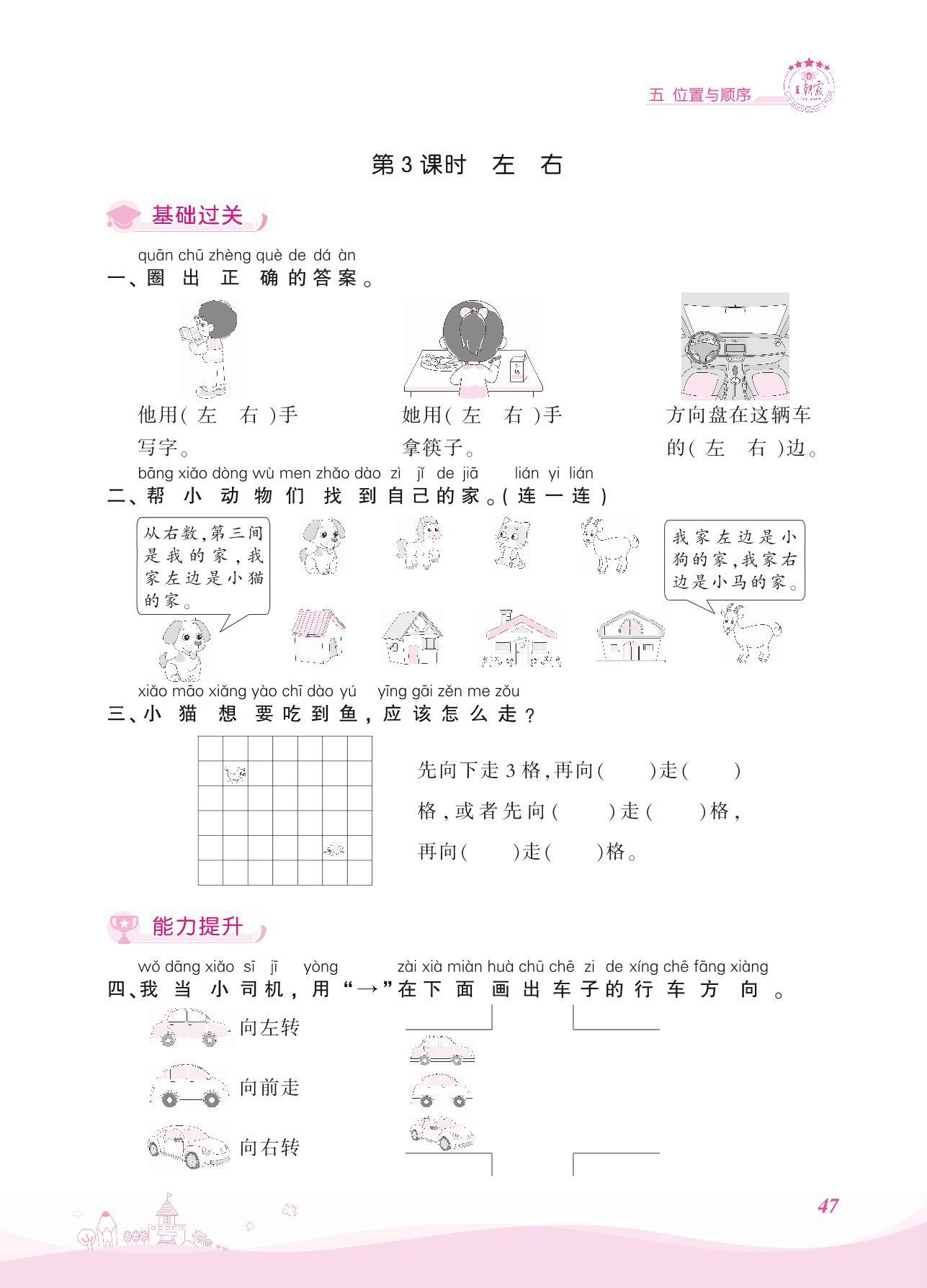 2021上册一年级数学北师版 五 位置与顺序——第3课时 左右