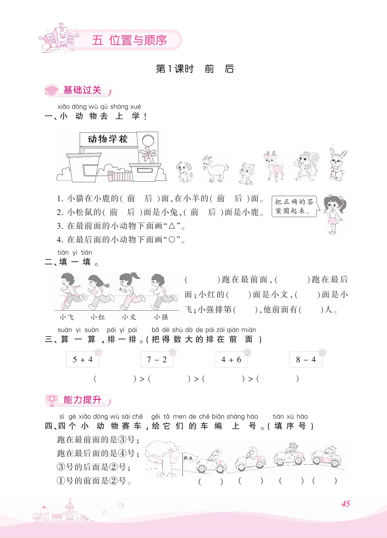 2021上册一年级数学北师版 五 位置与顺序——第1课时 前后