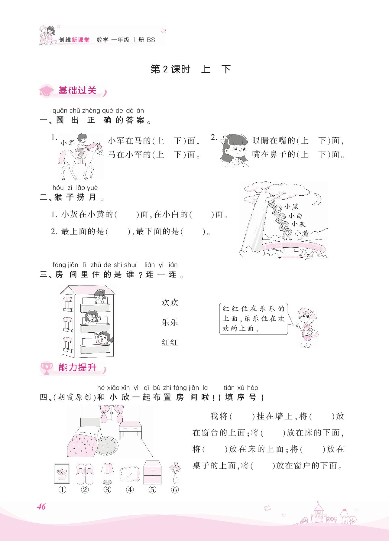 2021上册一年级数学北师版 五 位置与顺序——第2课时 上下