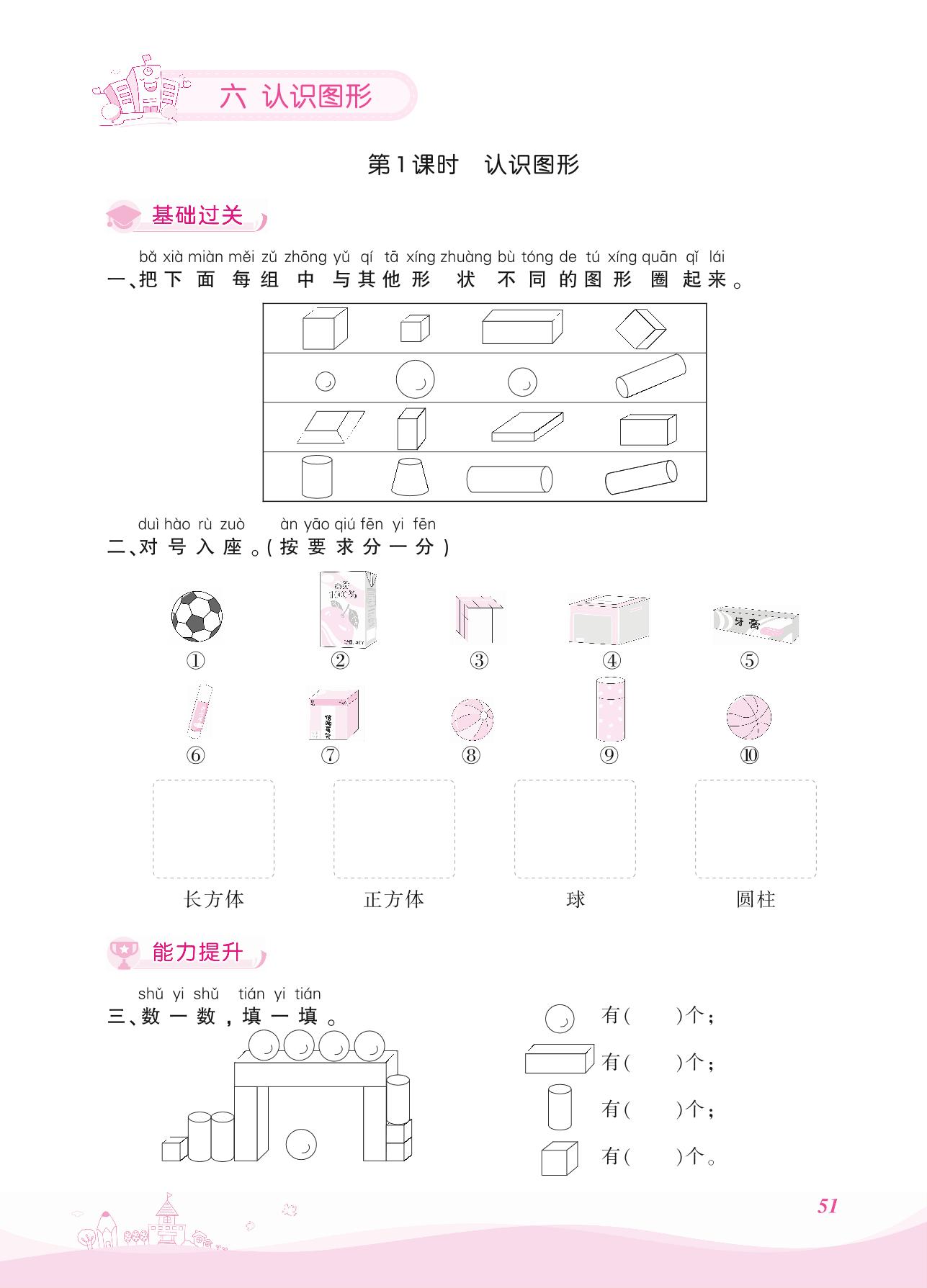 2021上册一年级数学北师版 六 认识图形——第1课时 认识图形