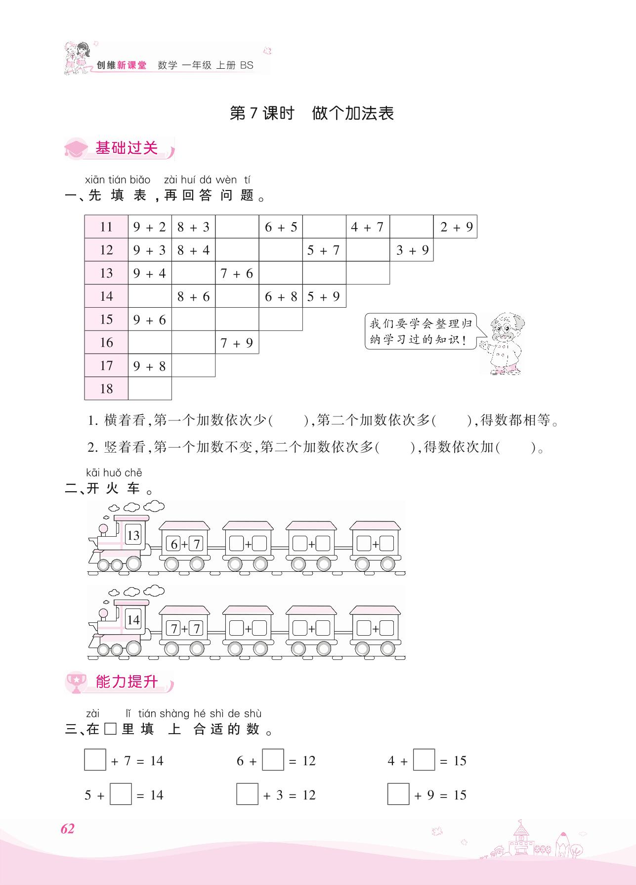 2021上册一年级数学北师版 七 加与减(二)——第7课时 做个加法表