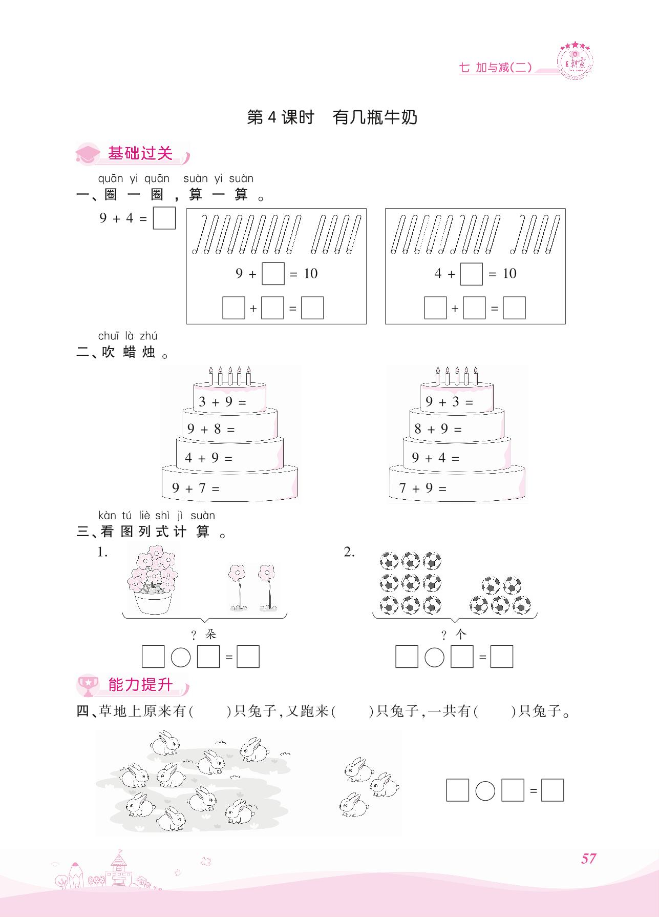 2021上册一年级数学北师版 七 加与减(二)——第4课时 有几瓶牛奶