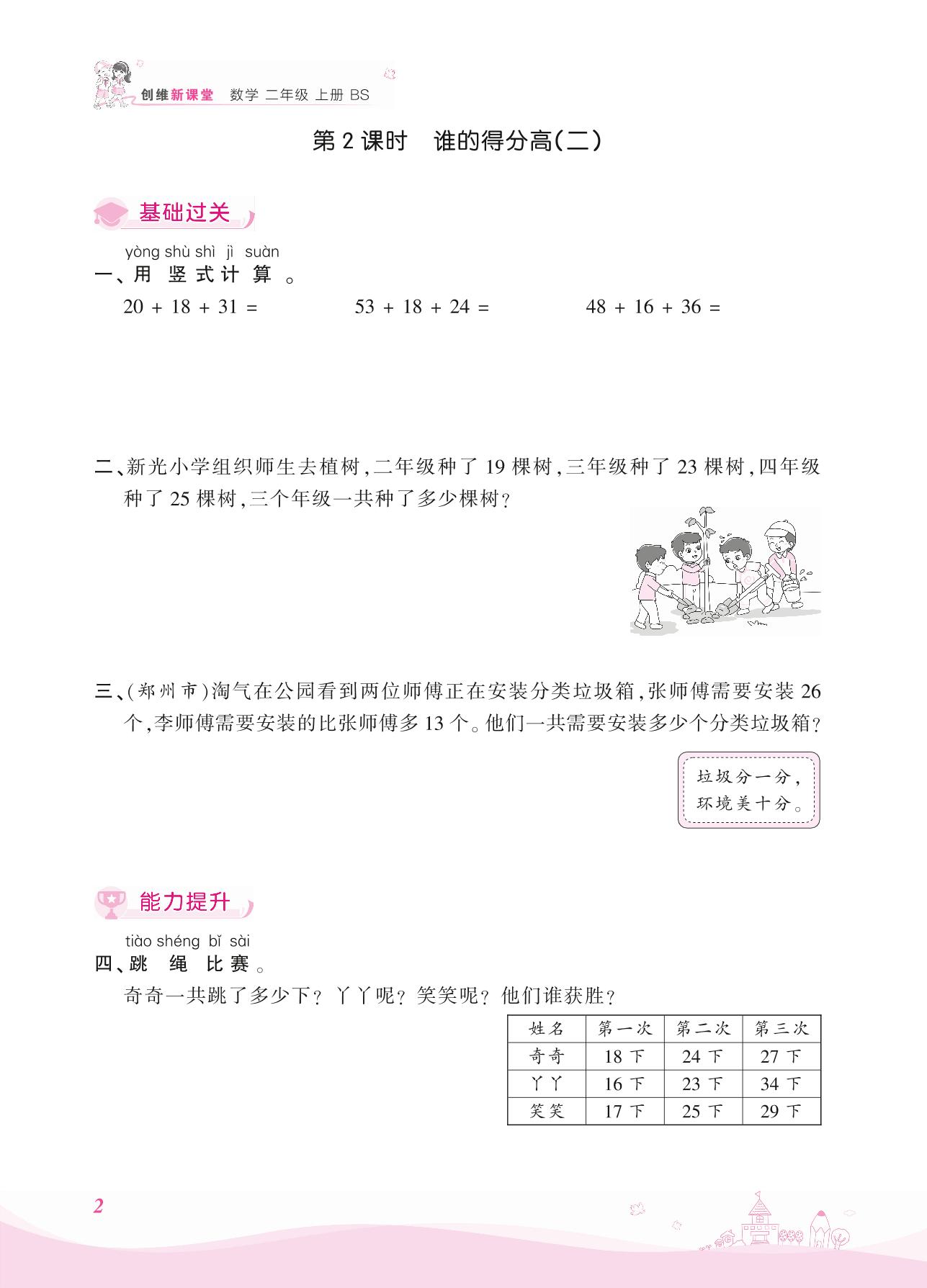 2021上册二年级数学北师版 一 加与减——第2课时 谁的得分高(二)