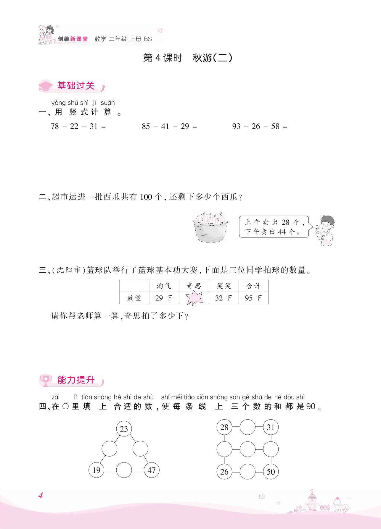 2021上册二年级数学北师版 一 加与减——第4课时 秋游(二)