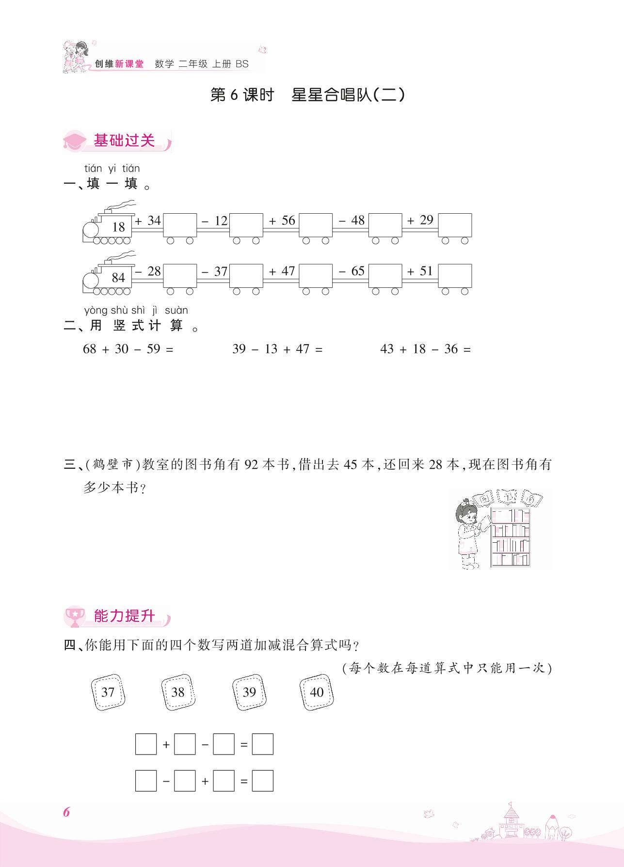 2021上册二年级数学北师版 一 加与减——第6课时 星星合唱队(二)