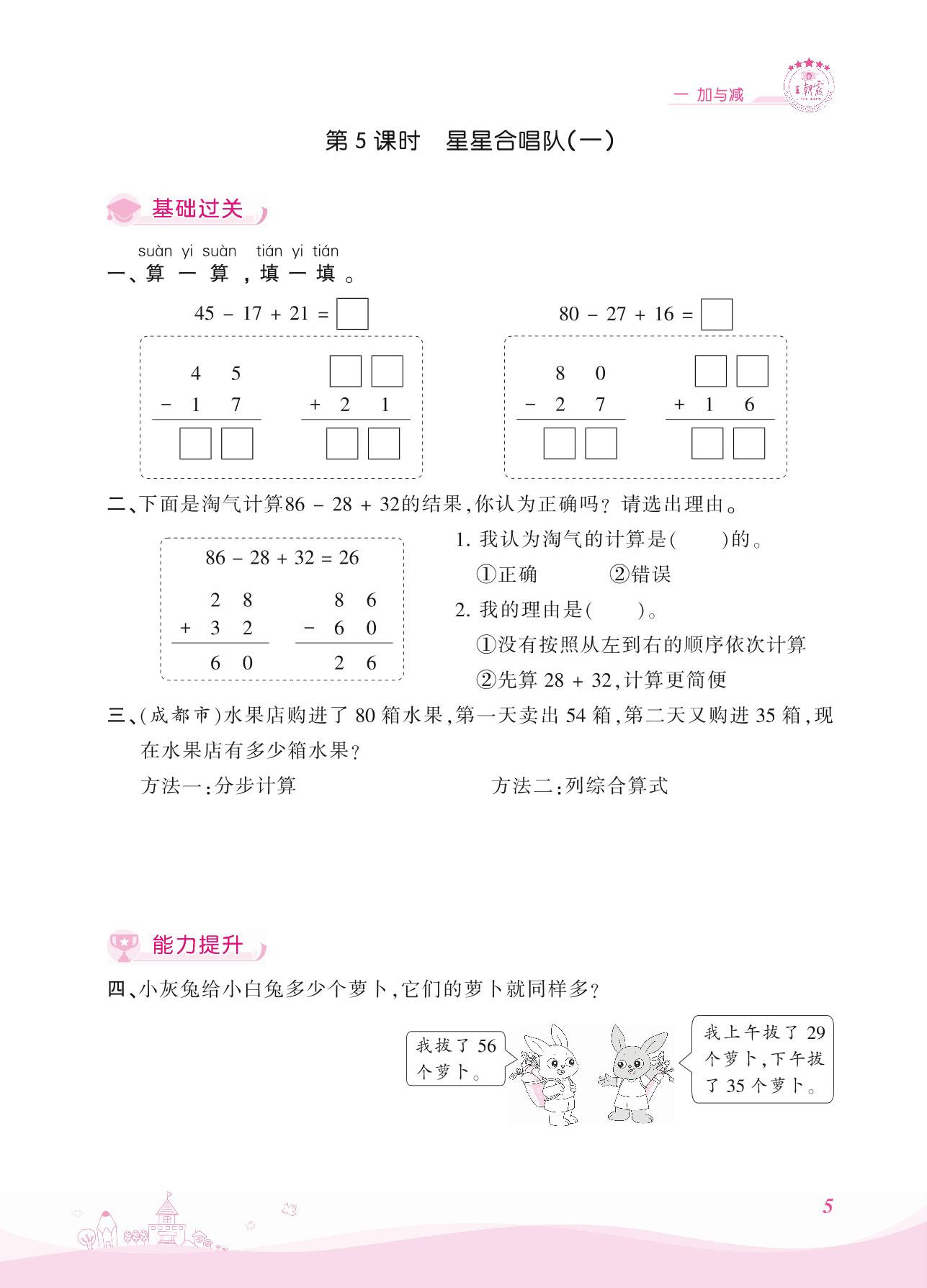 2021上册二年级数学北师版 一 加与减——第5课时 星星合唱队(一)