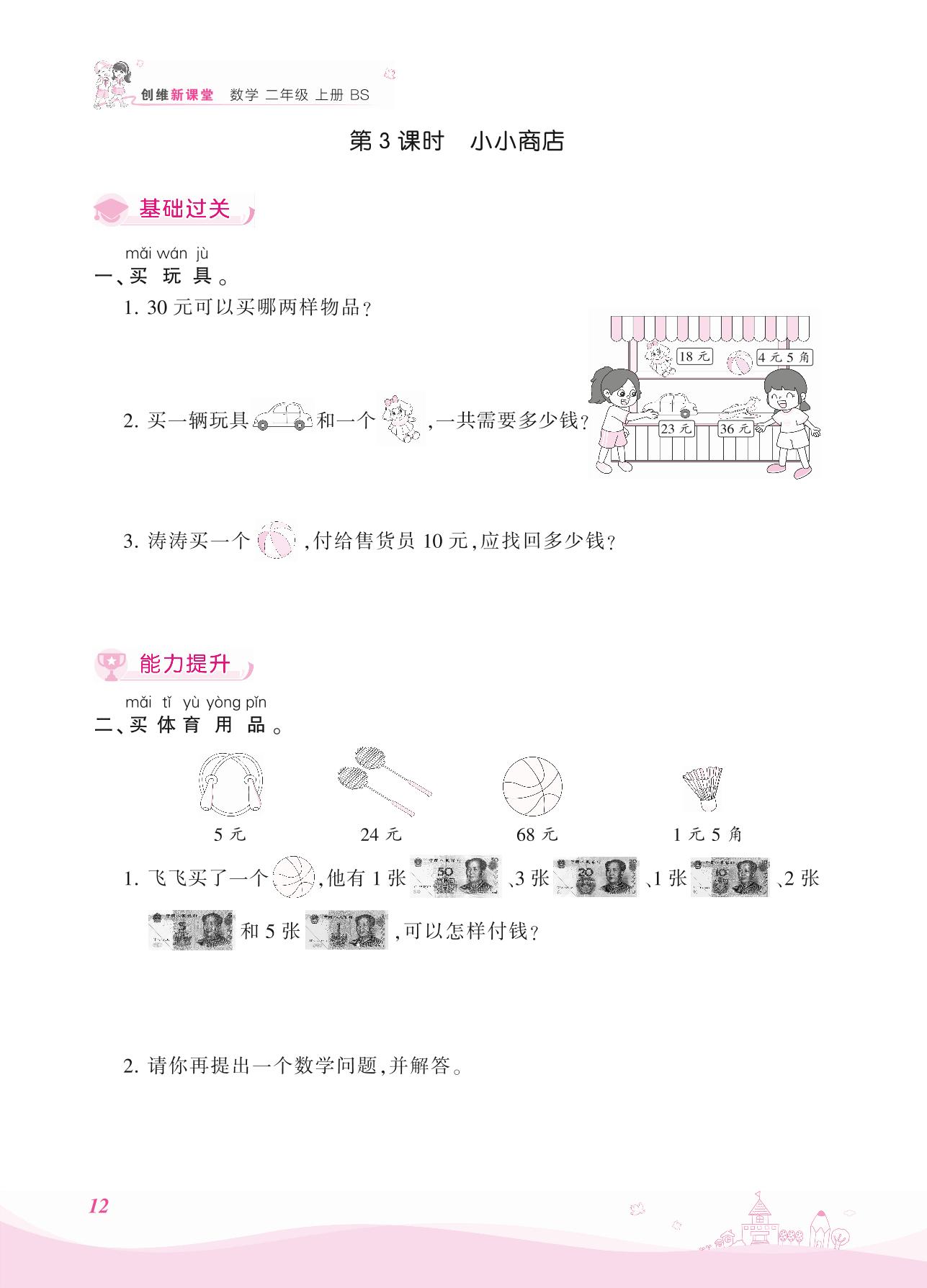 2021上册二年级数学北师版 二 购物——第3课时 小小商店