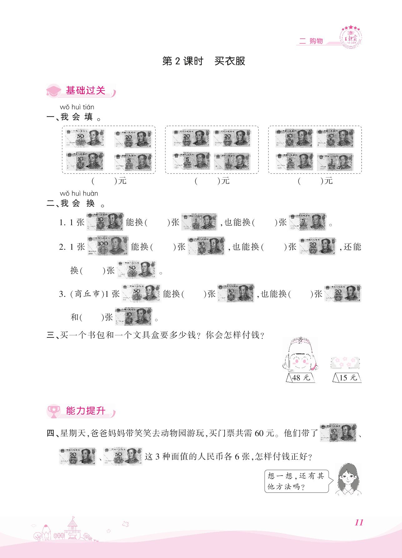 2021上册二年级数学北师版 二 购物——第2课时 买衣服
