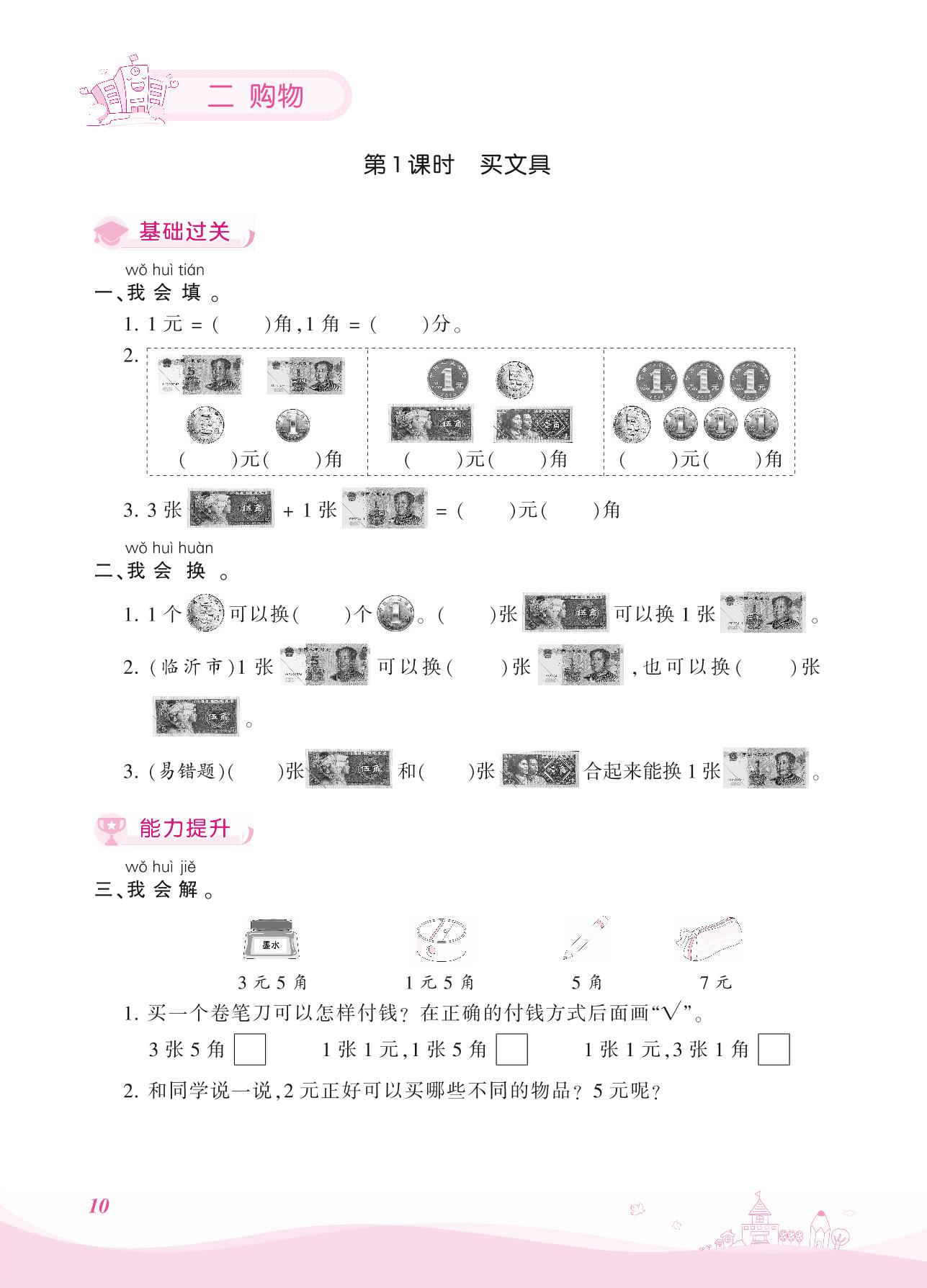 2021上册二年级数学北师版 二 购物——第1课时 买文具